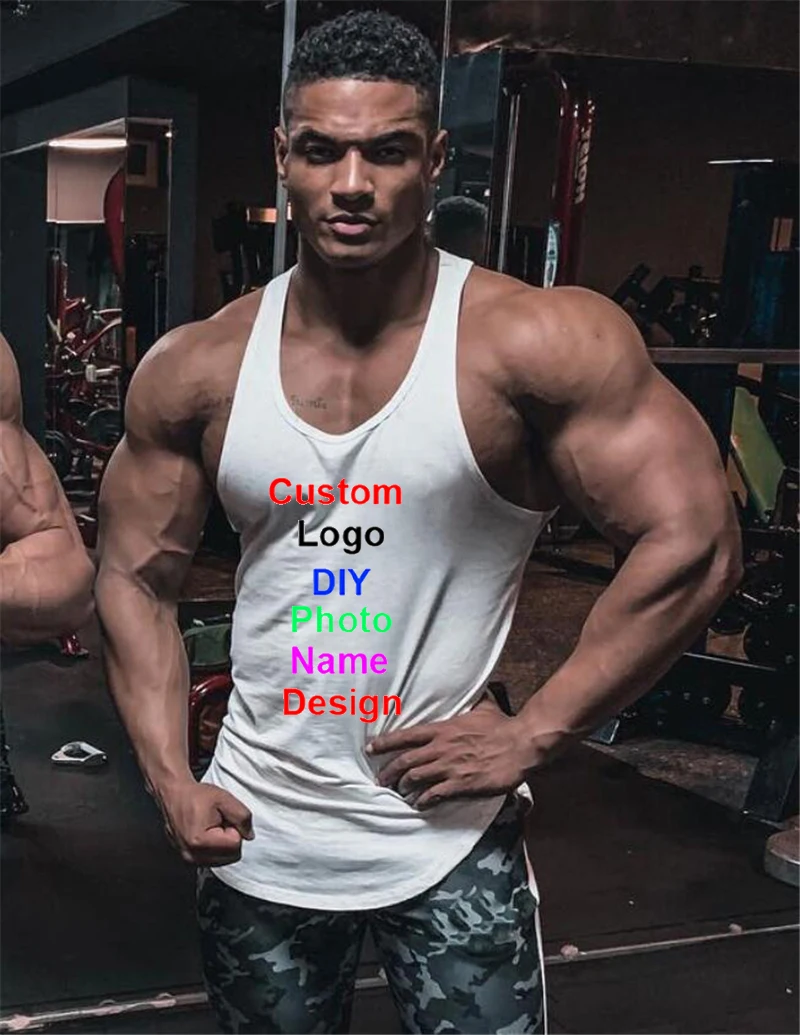 Жилет мужской для бега с логотипом на заказ, майка из хлопка сделай сам для спортзала, бодибилдинга, рубашка без рукавов, одежда для фитнеса