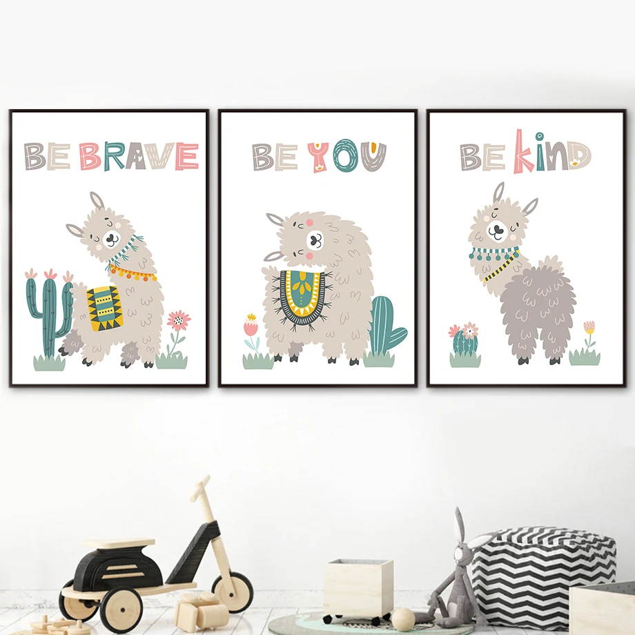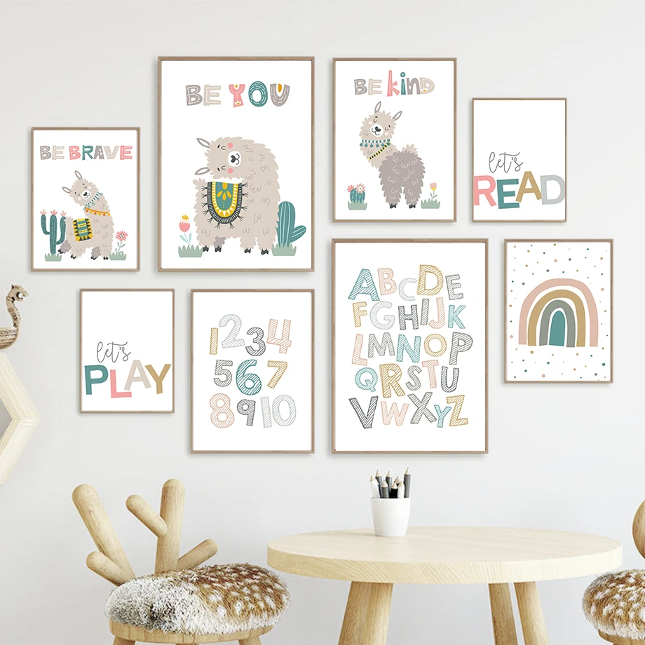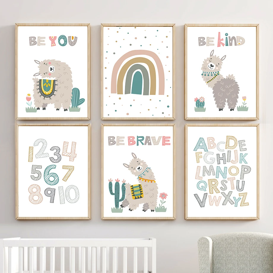 Милая альпака, кактус, цветок, радуга, цифры, цитаты, настенная Картина на холсте, скандинавские постеры и принты, настенные картины, декор для детской комнаты
