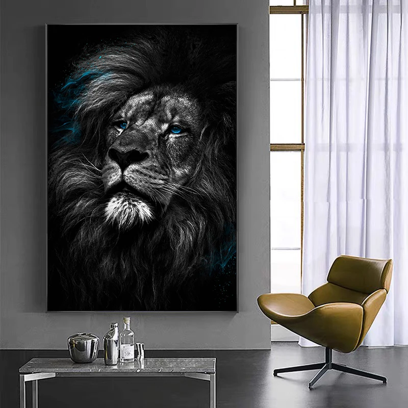 Свирепый лев с синим плакаты с глазами и принты картины на холсте искусство стены фотографии для Декор в гостиную (без рамки)