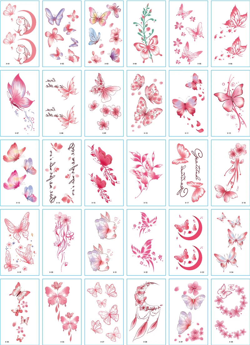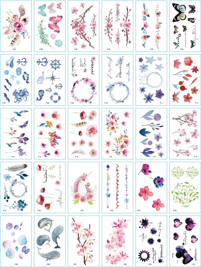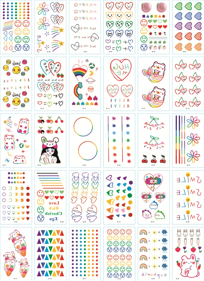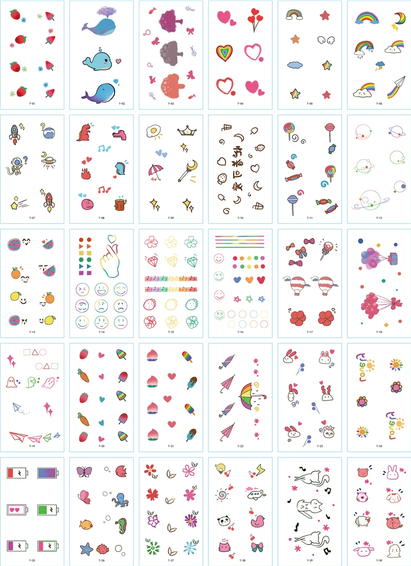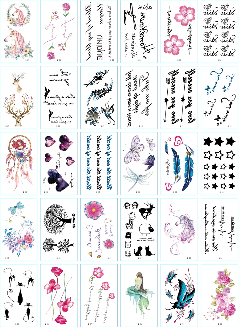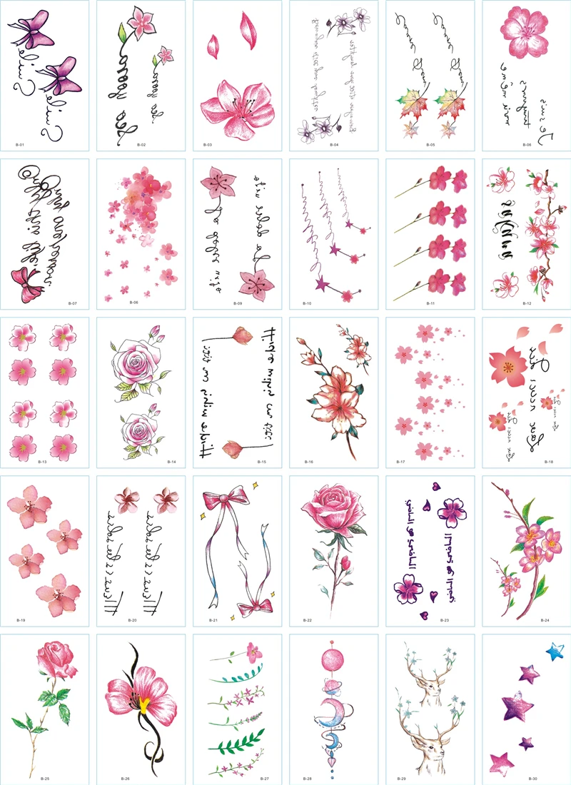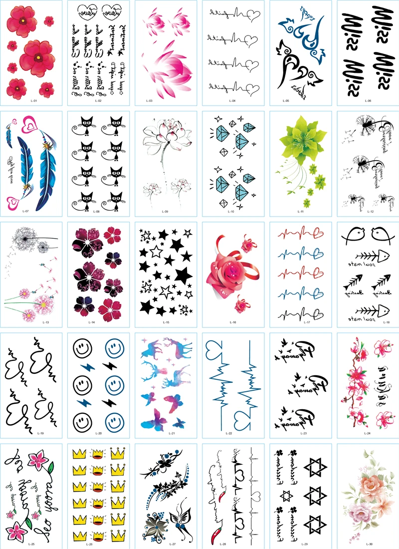 30 шт.компл. мультяшная временная татуировка, наклейка, цветной рисунок, цветок, милый Английский алфавит, детская татуировка на тело для женщин и мужчин, наклейка