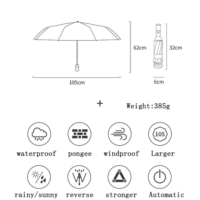 Автоматический складной мужской бизнес-зонт для путешествий портативный Ветрозащитный складной зонт для женщин с безопасным светоотражающим флуоресцентным покрытием