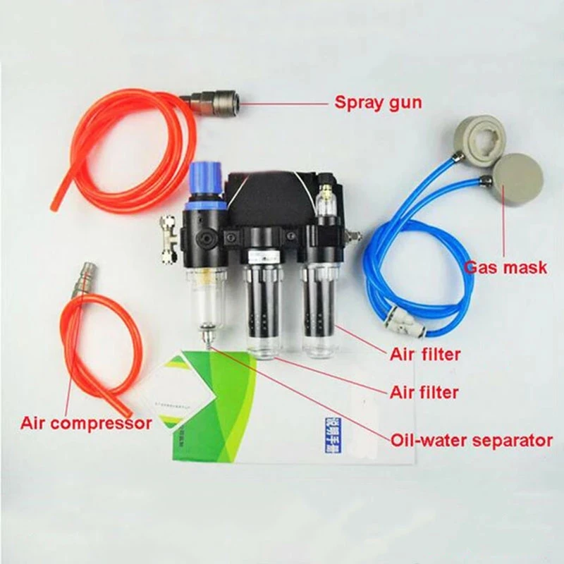 3-в-1 система подачи воздуха: увлажнитель воздуха, воздушный фильтр и масляно-водяной сепаратор, без маску на лицо.4 в 1 система подачи воздуха: увлажнитель воздуха, воздушный фильтр, воздушный фильтр и сепаратор масляной воды без маски.Система двойного источника воздуха: воздушный фильтр, воздушный фильтр и сепаратор масляной воды без маски