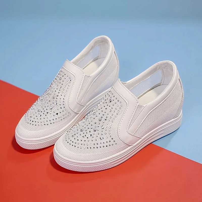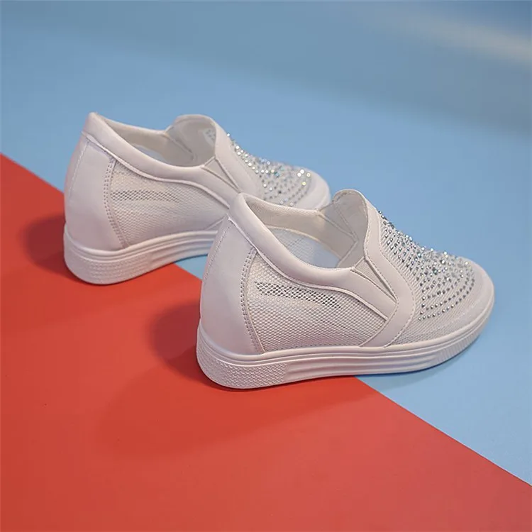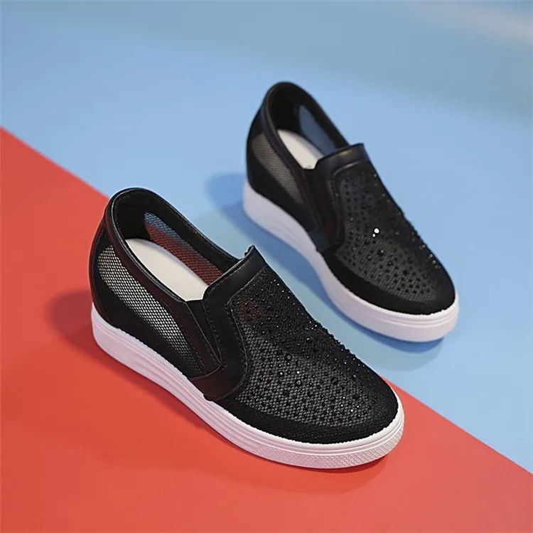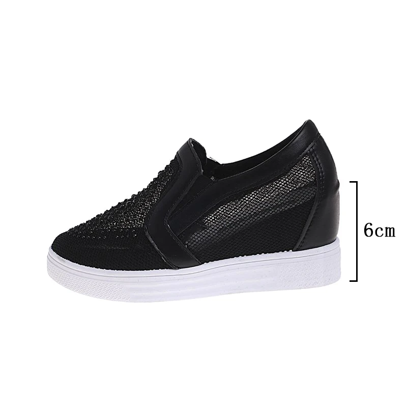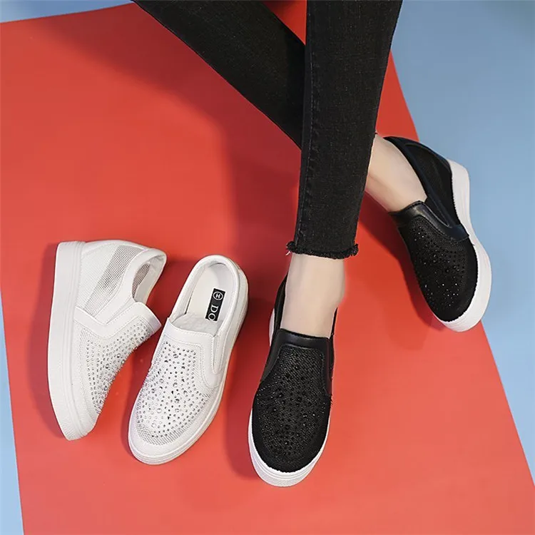 Летние сетчатые кроссовки; Женские туфли-стразы; Белые и черные женские лоферы; 2021; Удобные дышащие кроссовки на скрытой танкетке