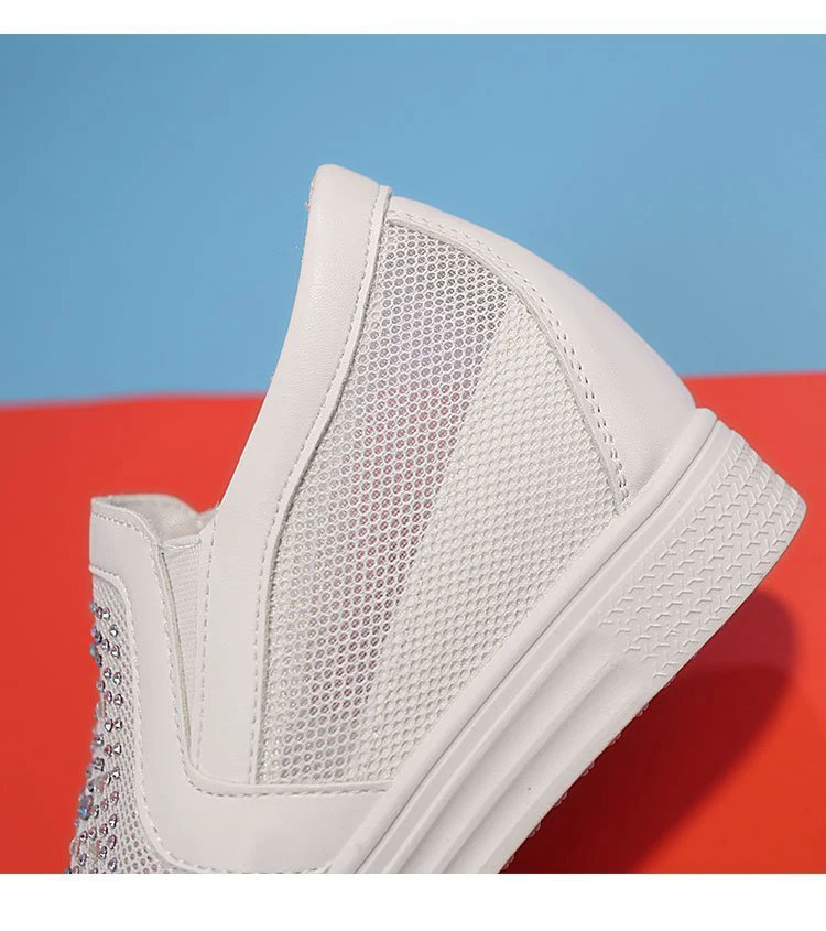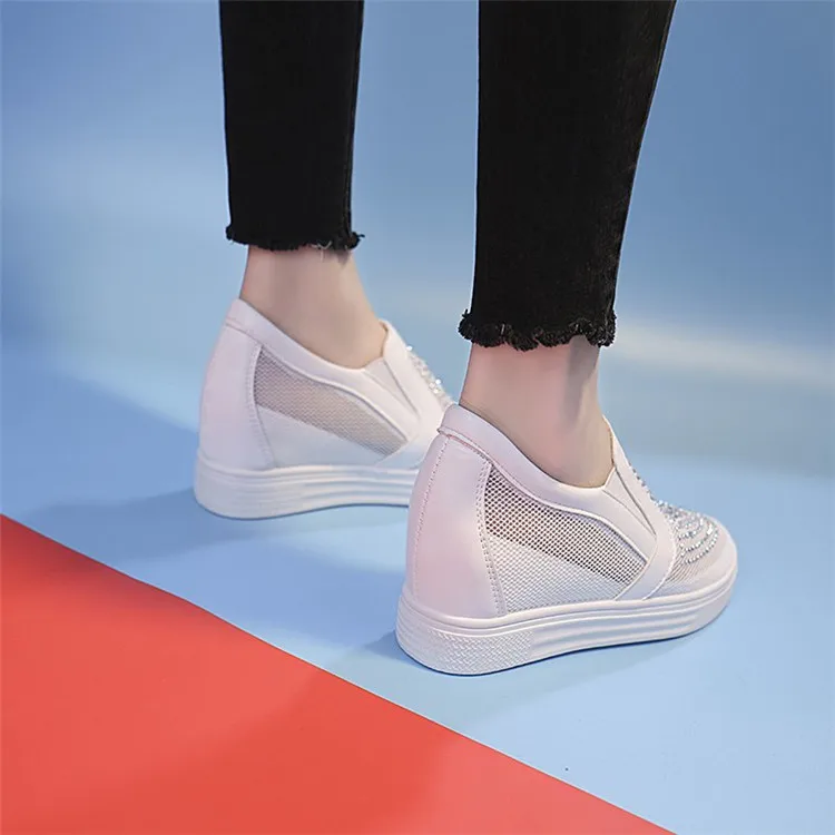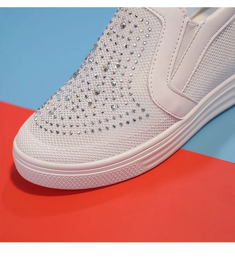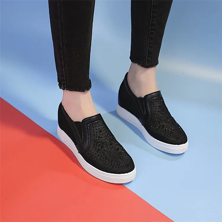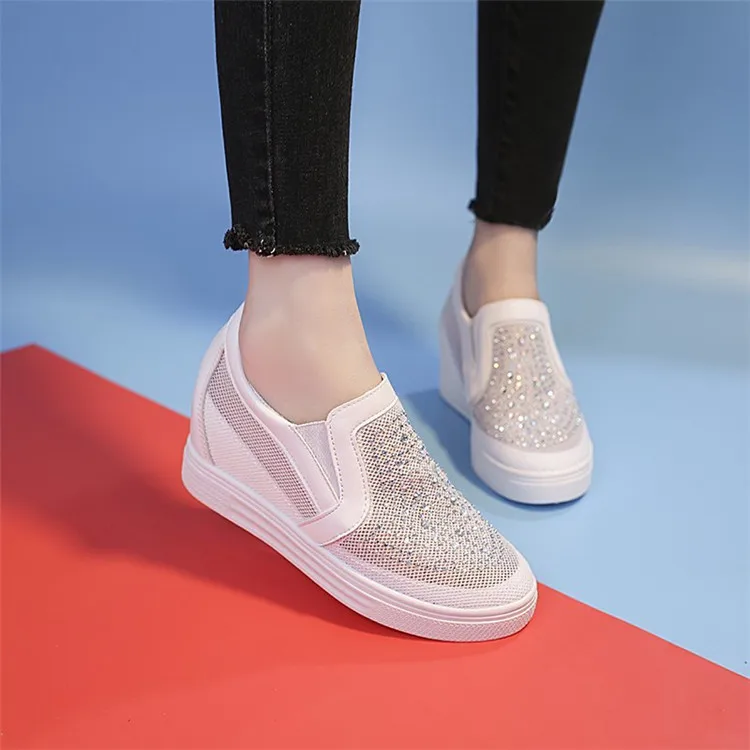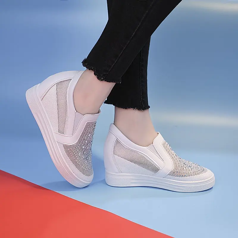 Летние сетчатые кроссовки; Женские туфли-стразы; Белые и черные женские лоферы; 2021; Удобные дышащие кроссовки на скрытой танкетке