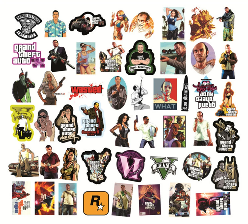 103050 шт. GTA наклейки из игры DIY водонепроницаемый Дорожный чемодан для ноутбука скейтборд шлем Автомобильный детские наклейки классический граффити игрушечные наклейки