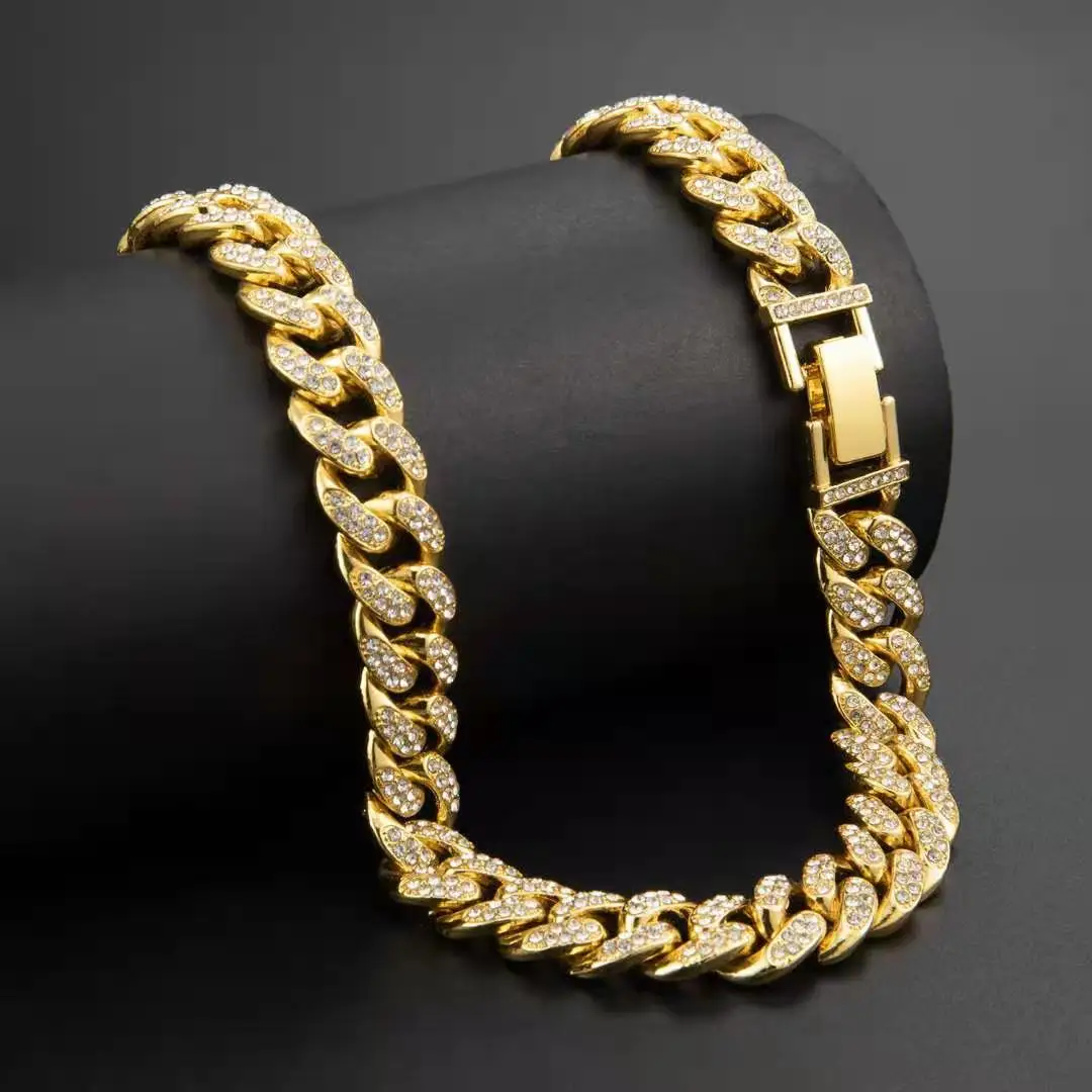 Хип-хоп со льдом ограненные Стразы 2 шт. один комплект Майами кубинской камнями Bling, ожерелья с Браслеты для мужские ювелирные изделия