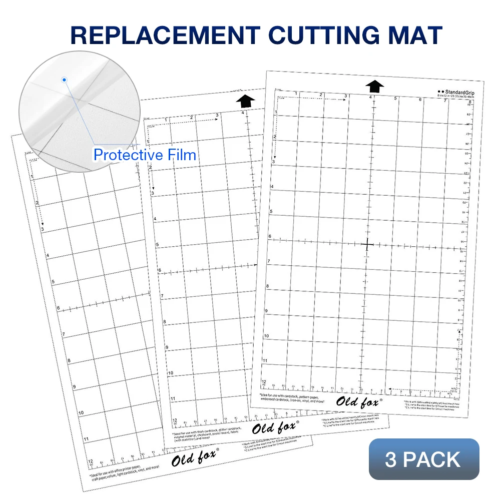 Сменный коврик для резки, 3 шт., прозрачный клейкий коврик с измерительной сеткой, 8 на 12 дюймов, для машины для плоттера камеи силуэта