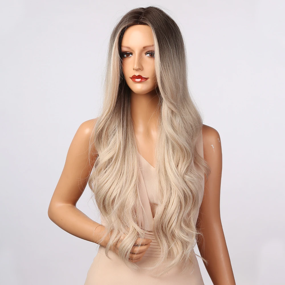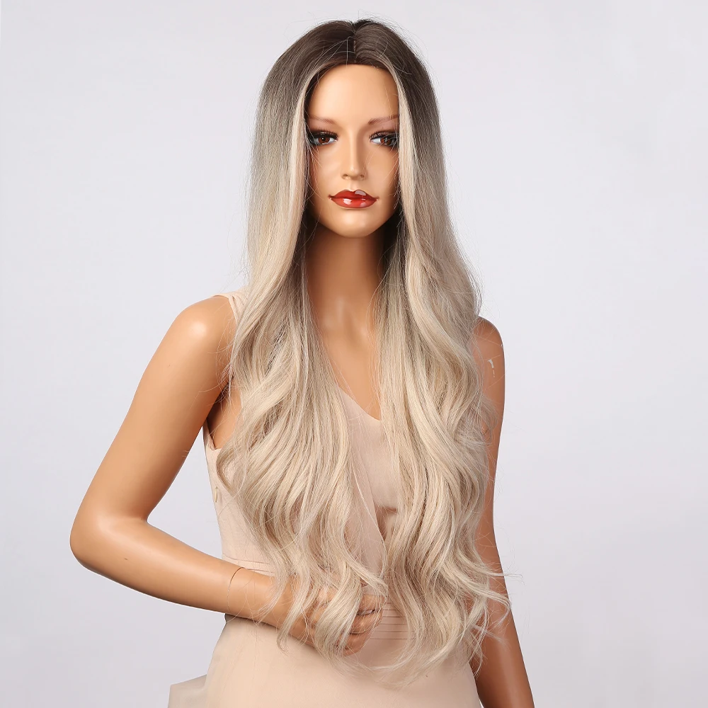 Генри маргу длинные волнистые Омбре коричневые платиновые блондинки парики средняя часть косплей вечерние синтетические парики для женщин термостойкие