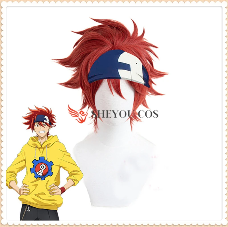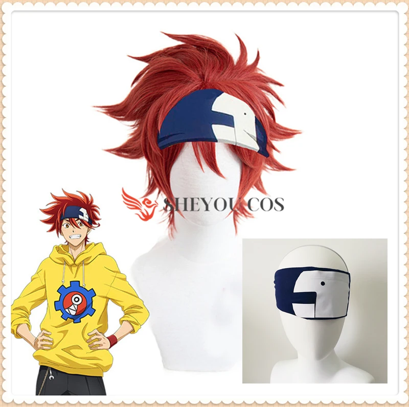 Парик для косплея Reki Kyan SK8 the Infinity, красные короткие мужские парики для косплея, термостойкие синтетические волосы, парик с шапочкой, синяя повязка на голову