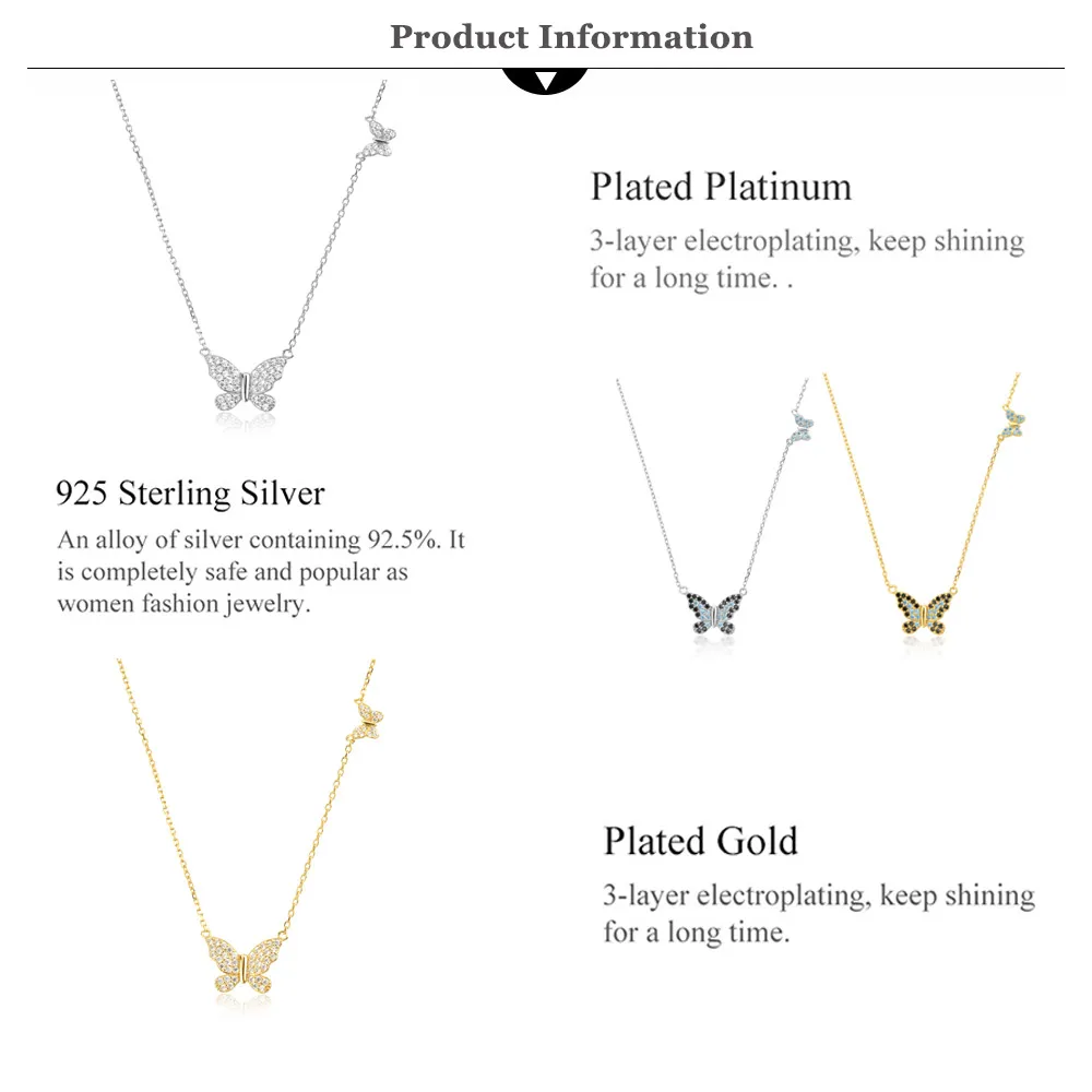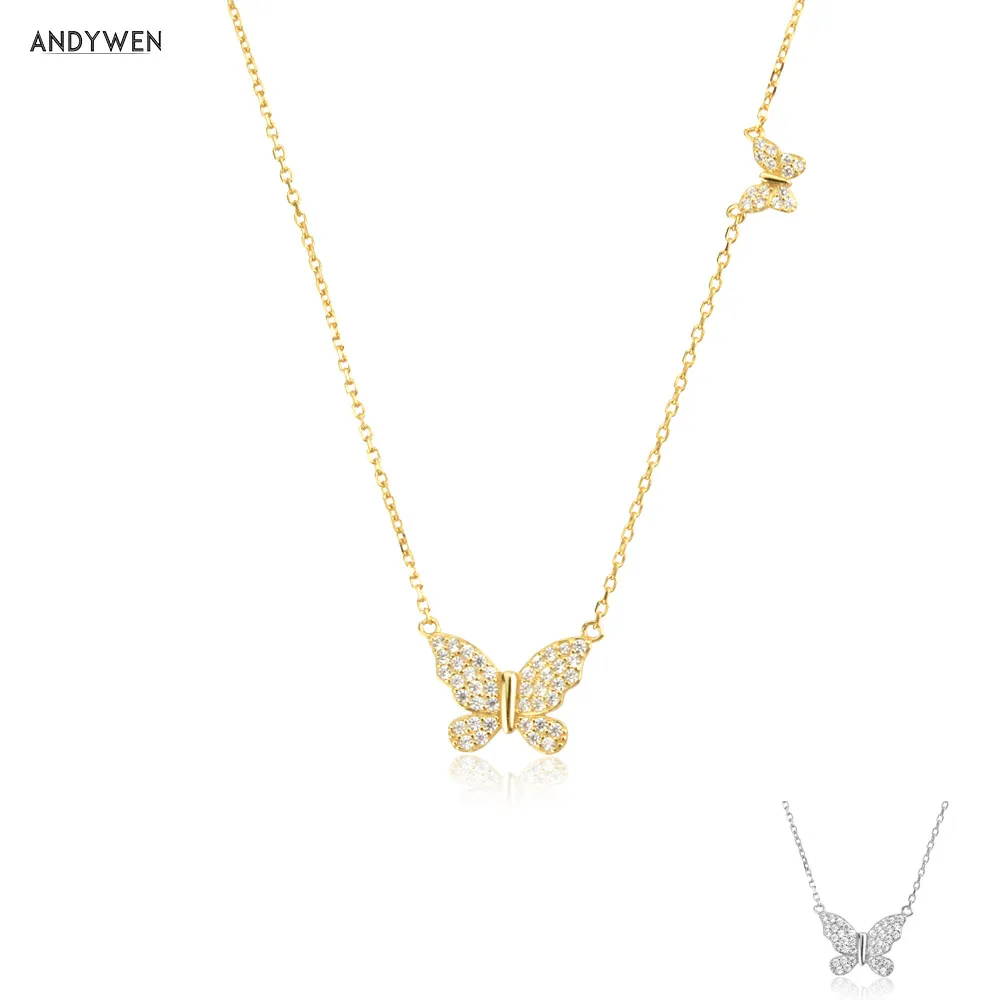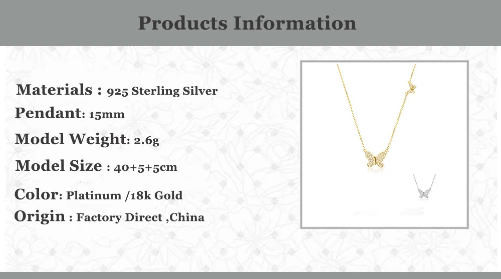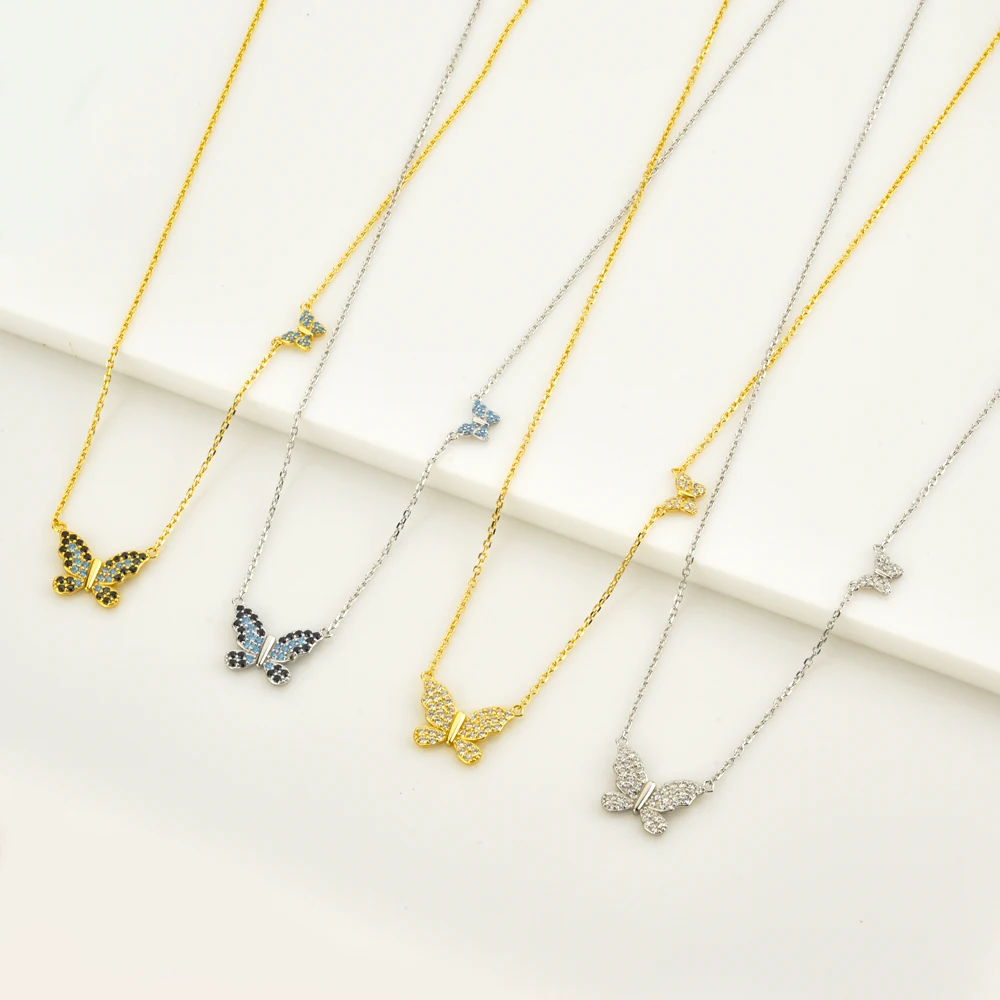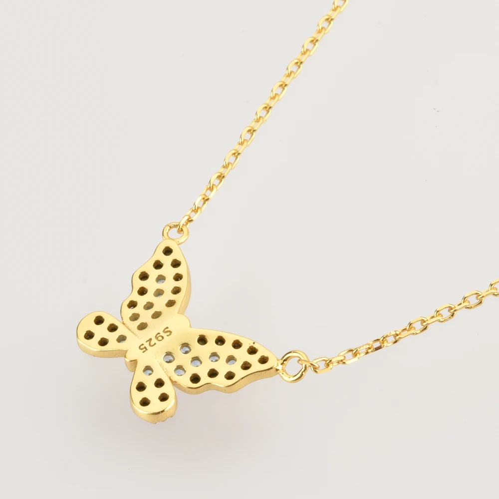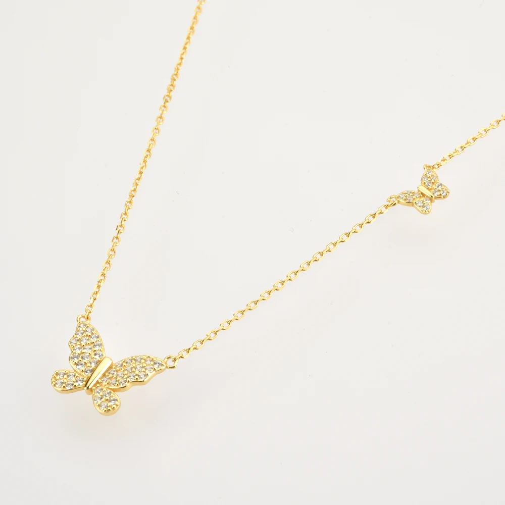 Длинная цепочка с подвеской-бабочкой, из серебра 925 пробы