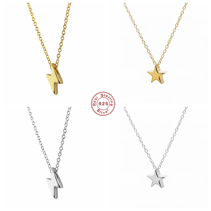 Женское колье из серебра 925 пробы, с подвеской в виде звезды, молнии и болта