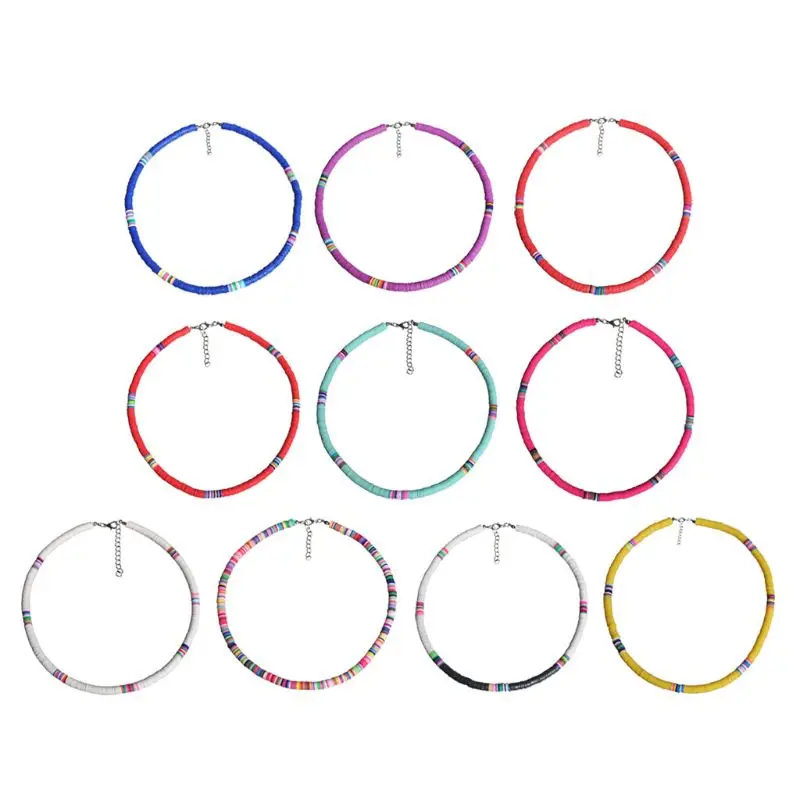 Богемное пляжное разноцветное ожерелье из полимерной глины с бусинами в стиле бохо, Радужное ожерелье из полимерной глины, ювелирные изделия для женщин и девочек, регулируемое