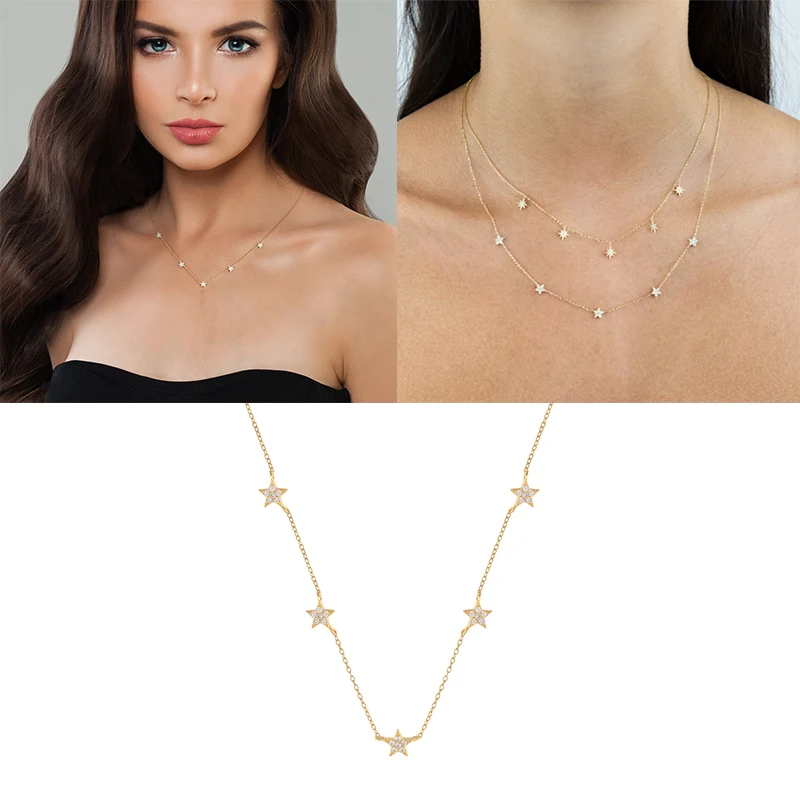 Автоклав 925 Серебряное ожерелье для женщин с принтами звезд и Крес...