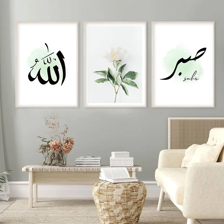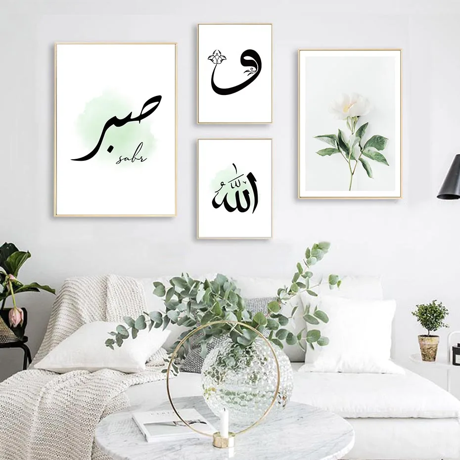 Мусульманская Картина на холсте с зеленой стеной, художественная картина Аллах альхамдулила, исламский плакат для гостиной, украшение для дома
