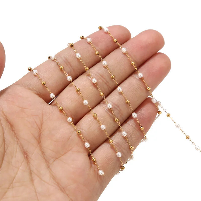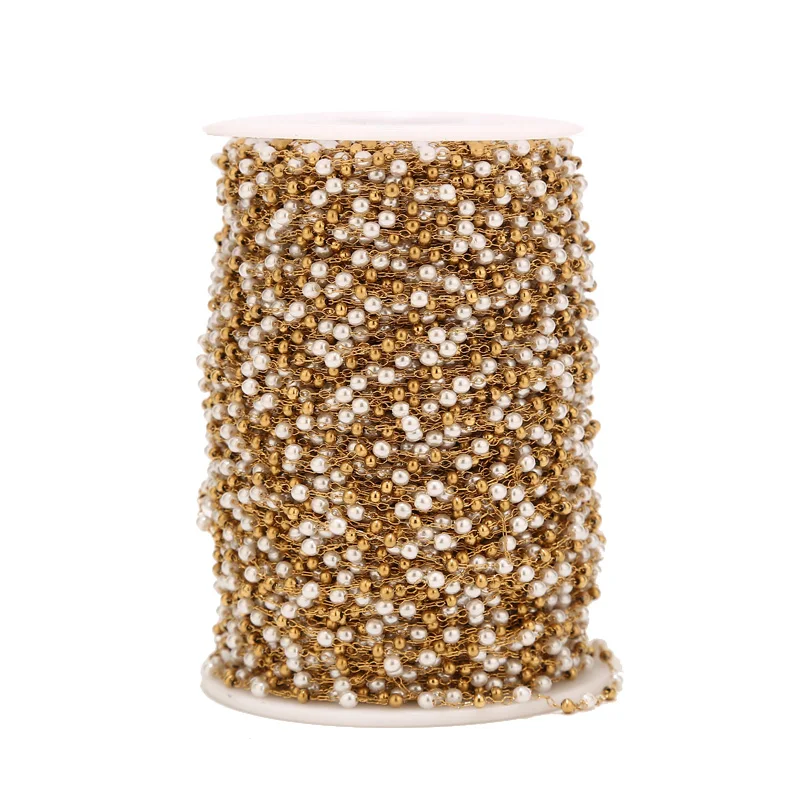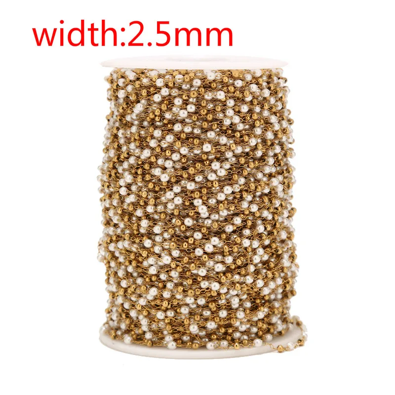 2,5 мм ширина высокое качество из нержавеющей стали Шаровые цепочки имитация жемчуга бусины цепи для DIY ювелирных изделий