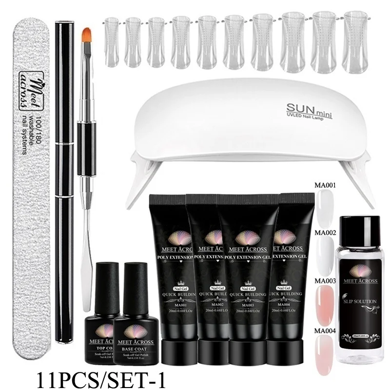 Посылка ция для следующих наборов:--- Пилка для ногтей * 1 шт.--- Ручка для наращивания ногтей * 1 шт.--- Базовое покрытие 7 мл * 1 шт.--- Верхнее покрытие 7 мл * 1 шт.-- Раствор для скольжения 20 мл * 1 шт.--- Быстрые строительные формы/формовки * 20 шт.--- Светодиодная лампа 6 Вт * 1 шт.--- 20 мл полиуф-гель * 4 шт.
