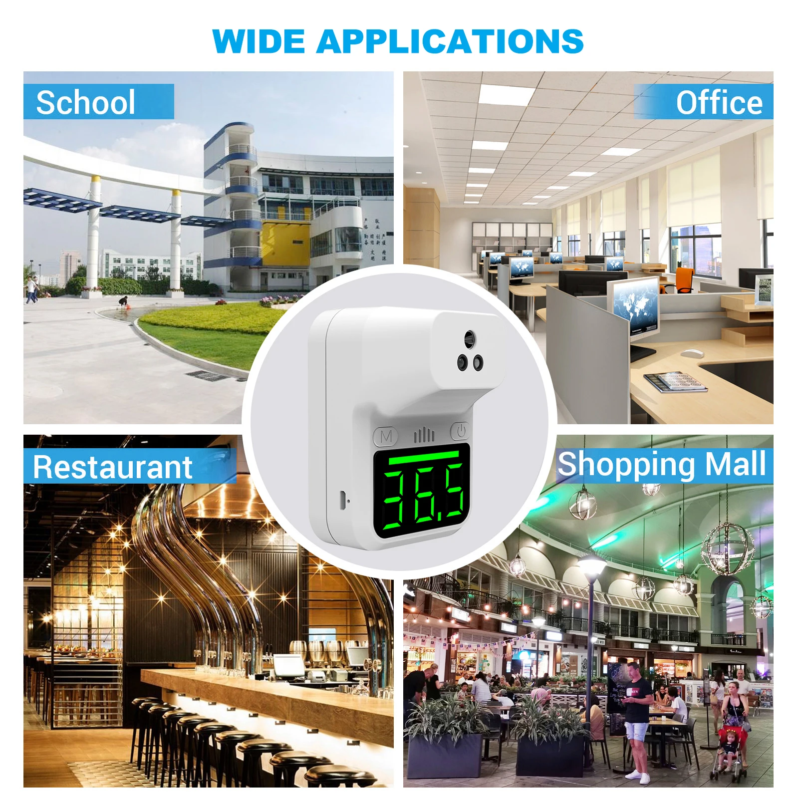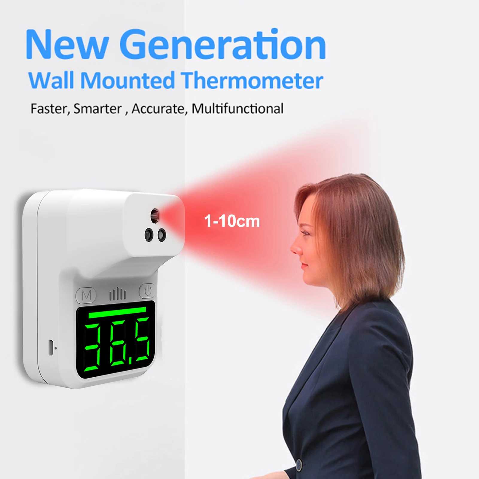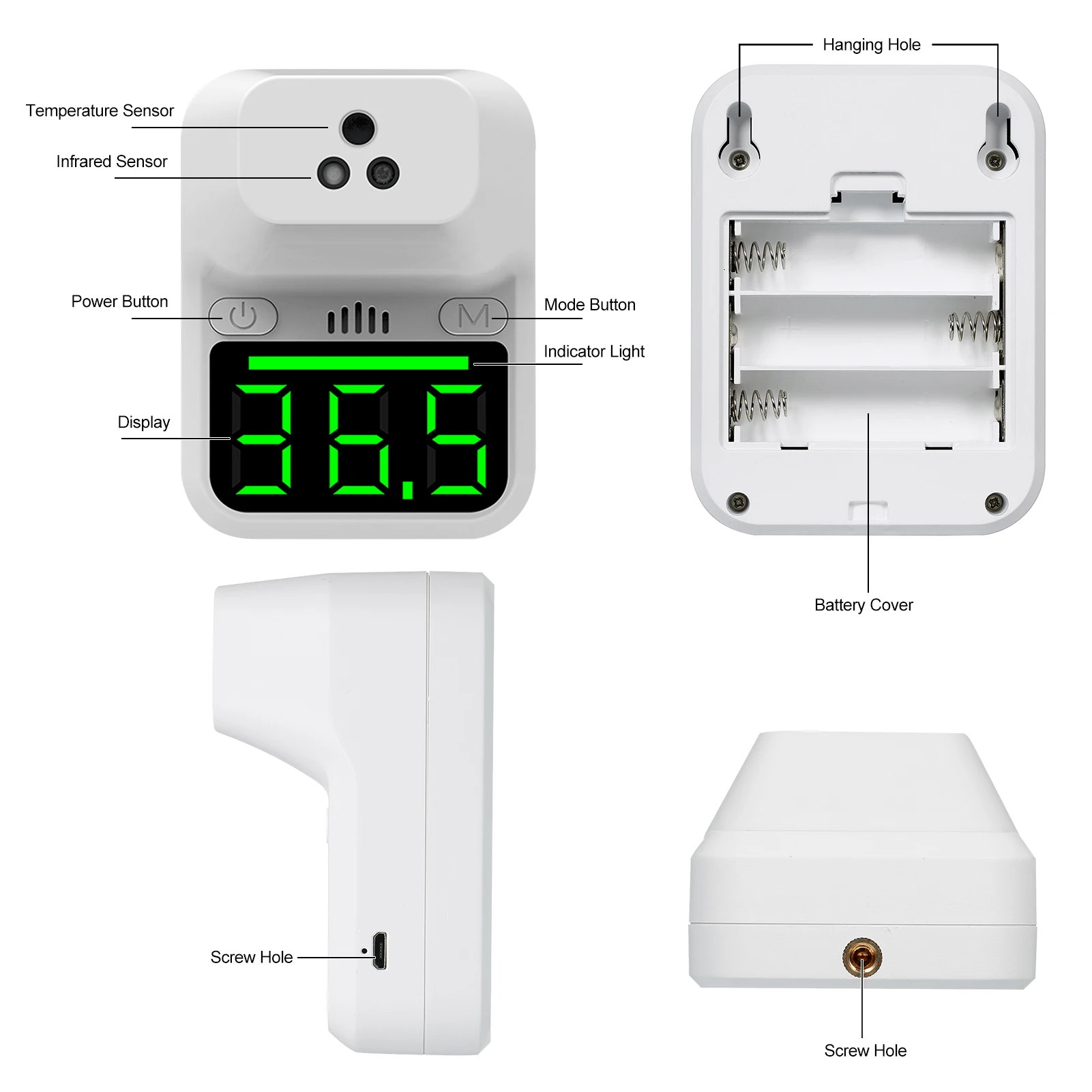 Настенный Бесконтактный инфракрасный термометр может измерять температуру в пределах 1-10 см от лба в пределах 1 с, надежное и Точное отображение показаний на экране.Цельсия и Фаренгейт могут быть переключены. Он также имеет речевых сообщений отсутствуют, так и на каждый день, 3 цвета индикатор светильник функция сигнала тревоги. Он может быть установлен на стене или поддерживается штативом и может широко использоваться в домашних условиях, офисах, гостиницах, торговых центрах, супермаркетах, школах, ресторанах, железнодорожных станциях, фабриках и других общественных местах.Особенности:Бесконтактное измерение:Бесконтактный инфракрасный термометр, вам нужно только стоять на расстоянии 1-10 см перед термометром. Избегайте прикосновения к коже, более здоровой и безопасной.Точный и надежный:Термометр для лба оснащен передовой инфракрасной технологией и высокоточным датчиком для получения достоверных и точных показаний в пределах 1 с.°C и °F переключаемый блок:Этот инфракрасный термометр для лба может отображать показания по Цельсию или по Фаренгейту. Диапазон измерения: 32 °C-43 °C/89,6 °F-109,4 °F.Голосовая передача на 2 языках:Поддерживает китайский и английский языки, 2 вида языков для голосового вещания, что более удобно в использовании.2 способа питания:3 * батарейки AA (не входят в комплект) или 5 в постоянного тока 1A вход с помощью usb-кабеля, два способа питания отвечают различным требованиям.Гибкая установка:Три режима установки поддерживаются. Его можно поместить на штатив или зафиксировать на стене крючком или непосредственно разместить на рабочем столе.Широкое применение:Широко используется дома или на заводах, офисных зданиях, супермаркетах, ресторанах, школах, железнодорожных станциях и других общественных местах.Характеристики:Цвет: белыйМатериал: пластикРежим измерения: БесконтактныйМесто измерения: лобРасстояние измерения: 1-10 смВремя ответа: 0,1 SПоддержка 2 языков: китайский и английскийДиапазон измерения: 32 °C-43 °C/89,6 °F-109,4 °FТочность измерения: ± 0,2 °CДисплей: Цельсия (°C) /Фаренгейт (°F)Источник питания: USB DC 5V или 3 * AA батарея (не входит в комплект)Ненормальная Автоматическая сигнализация: мигающий + звук "Di"Размер продукта: 99*75*58 мм/3,9*2,9 * 2.3inРазмер посылка: 100*75*60 мм/4*2,9 * 2.4inПосылка, вес: 158 г/5,57 унцийПосылка:1 * термометр1 * Руководство пользователя1 * USB кабель1 * набор аксессуаров