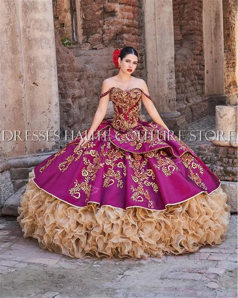 Винтажные мексиканские Платья с цветочным принтом для девочек 2021 элегантное платье с открытыми плечами и вышивкой из органзы с многослойными оборками для выпускного вечера