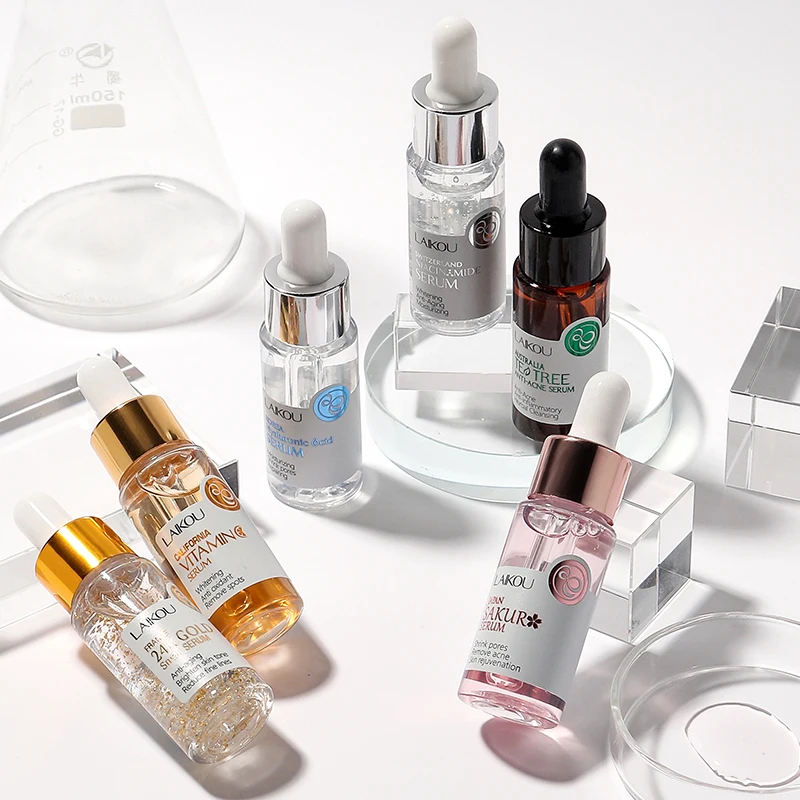 Вы знаете? Проблема с кожей после получения, но трудно восстановить. Необходимо немедленно ухаживать, иначе проблемы с кожей станут серьезными. Серия сывороток LAIKOU: 1*24k Золотая сыворотка улитки 1 * сыворотка Сакура 1 * витамины C сыворотка 1 * сыворотка гиалуроновой кислоты 1 * сыворотка чайного дерева 1 * Nicotinamide сыворотка