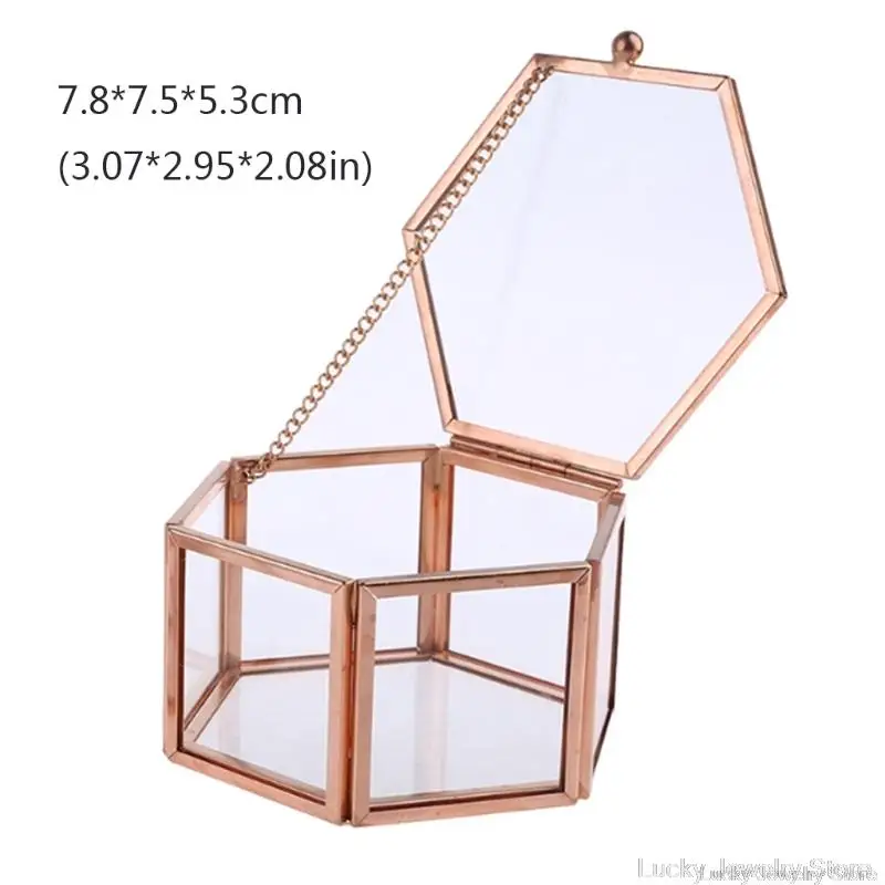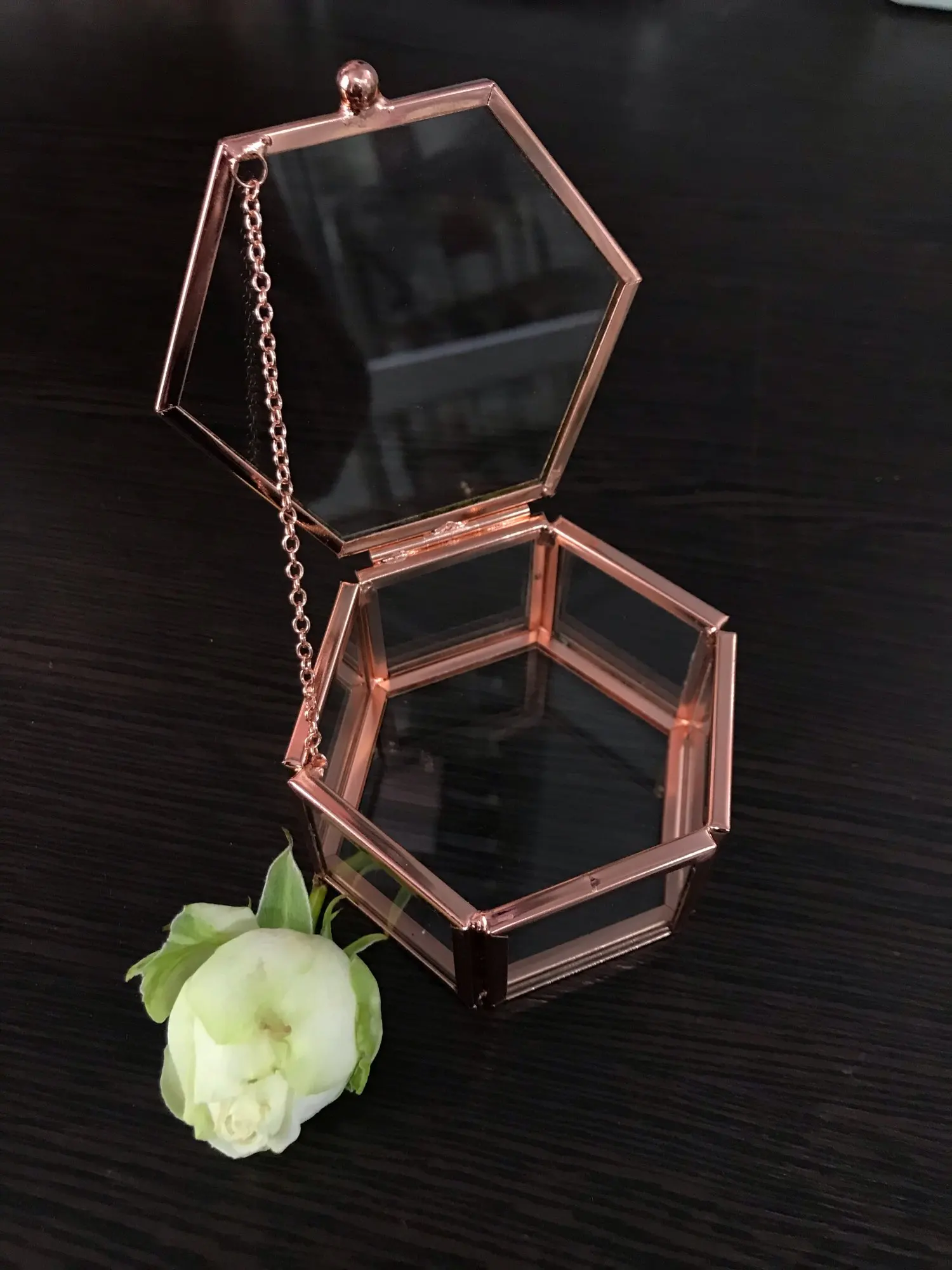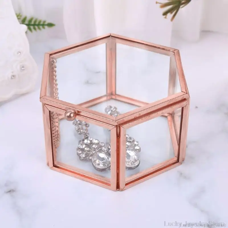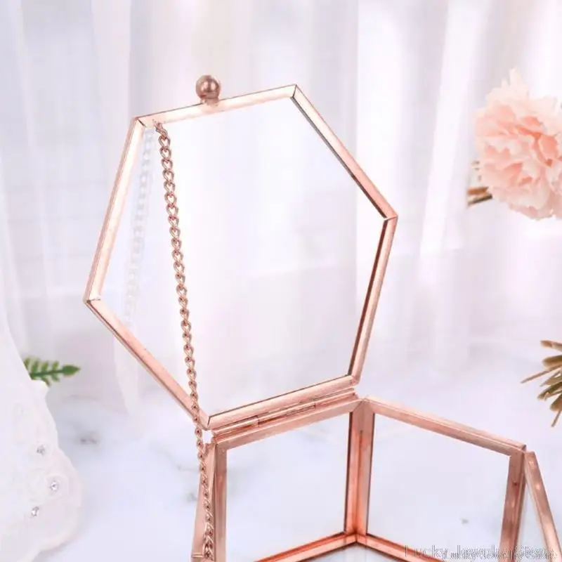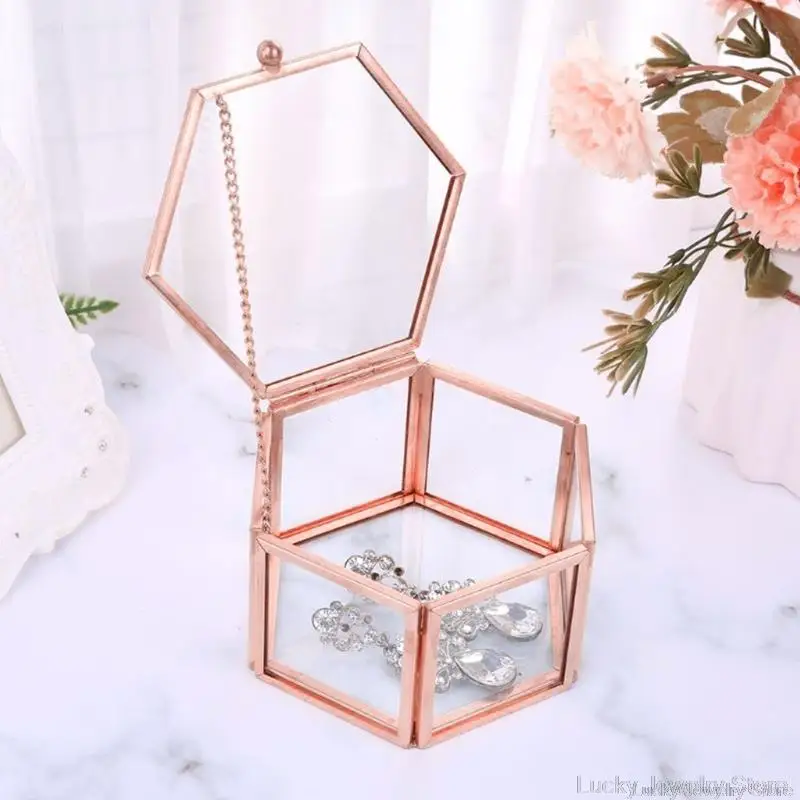 Шкатулка для колец M20 21, прозрачная шкатулка из розового золота с шестигранным узором геометрического дизайна, с держателем для ювелирных украшений
