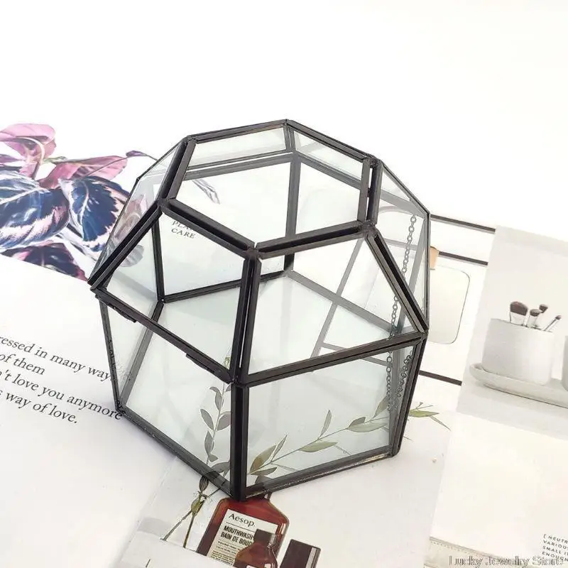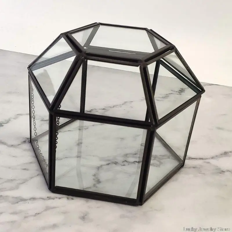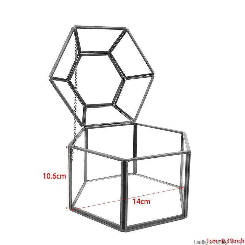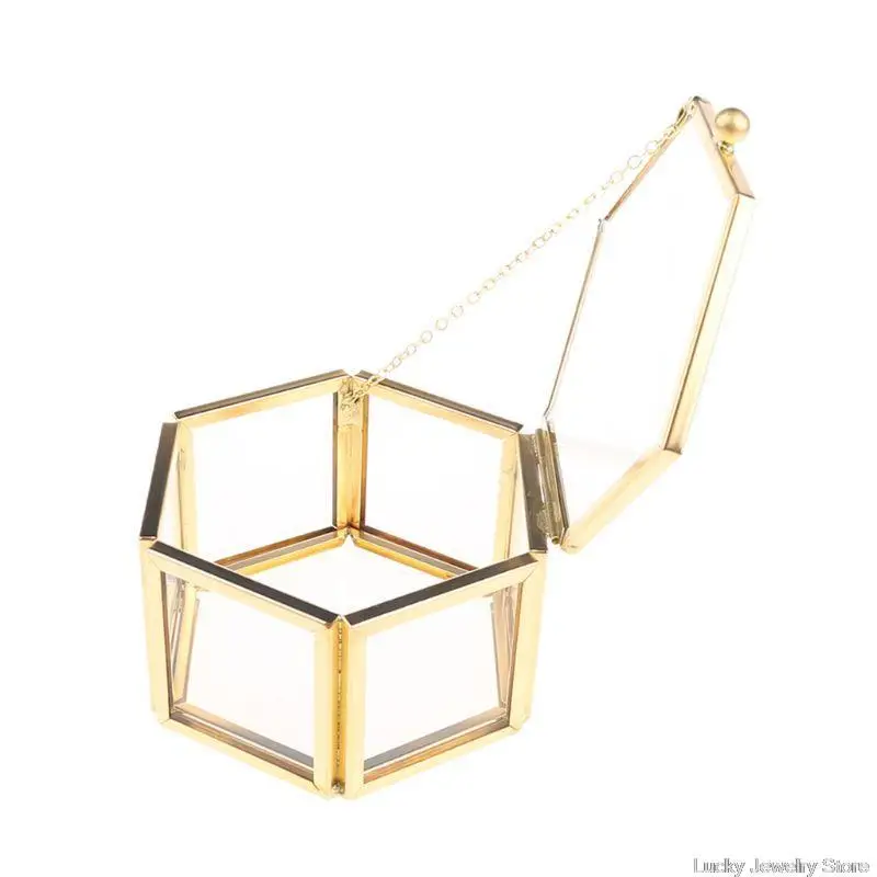 Уникальная современная стеклянная коробка-оригинальная стеклянная коробка с шестигранной формой. Стекло поверхностей картонных коробок с цепочкой перейти по ссылке в коробке; Изысканный и красивый дизайн делают его больше похоже на кусок специальный декор, который может светильник вверх ваше место и осветления кожи каждого глаза