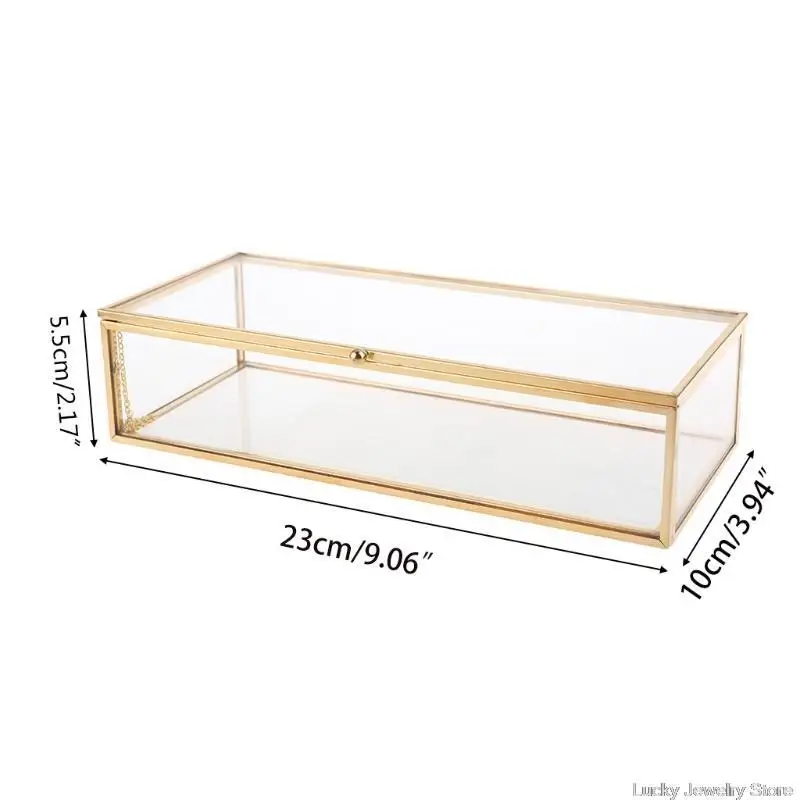 Особенности:Прочный органайзер для ювелирных изделий и безделушек-это стеклянный ювелирный ящик из металла и стекла. Металлическая оправа тщательно отделана красивым розовым золотом, дизайн прозрачной стеклянной стены надежно удерживает ваши предметы и позволяет видеть, что ваши ювелирные изделия отображаются красиво и привлекательно в коробке