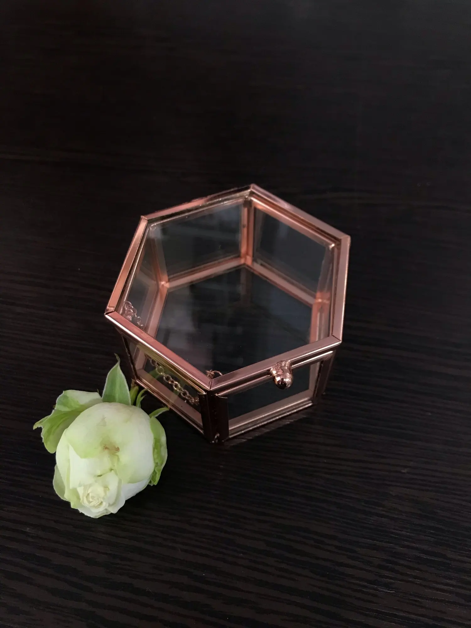 Шестигранная прозрачная коробка для колец из розового золота, шкату...