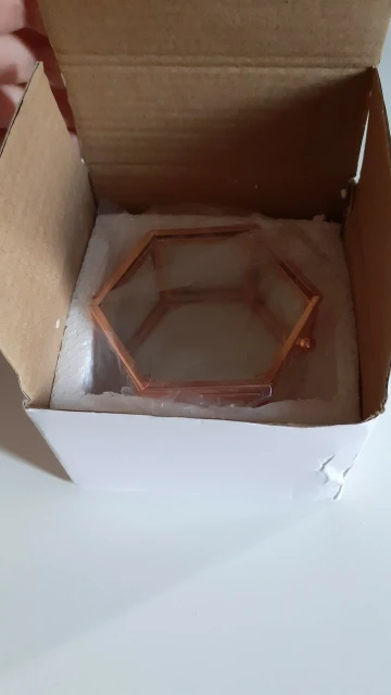 Технические характеристики:Тип: ящики для хранения и бункерыСтиль: СовременныйОсобенность: экологически чистыйФорма: ШестигранникМатериал: стекло + медьРазмер: розовое золото:3x3x2 дюйма (7,8x7,5x5,3 см).