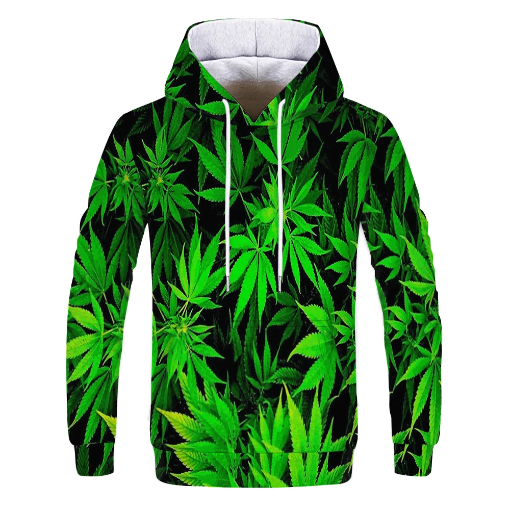 Толстовка с капюшоном, худи с 3D принтом зеленых кленовых листьев 2...