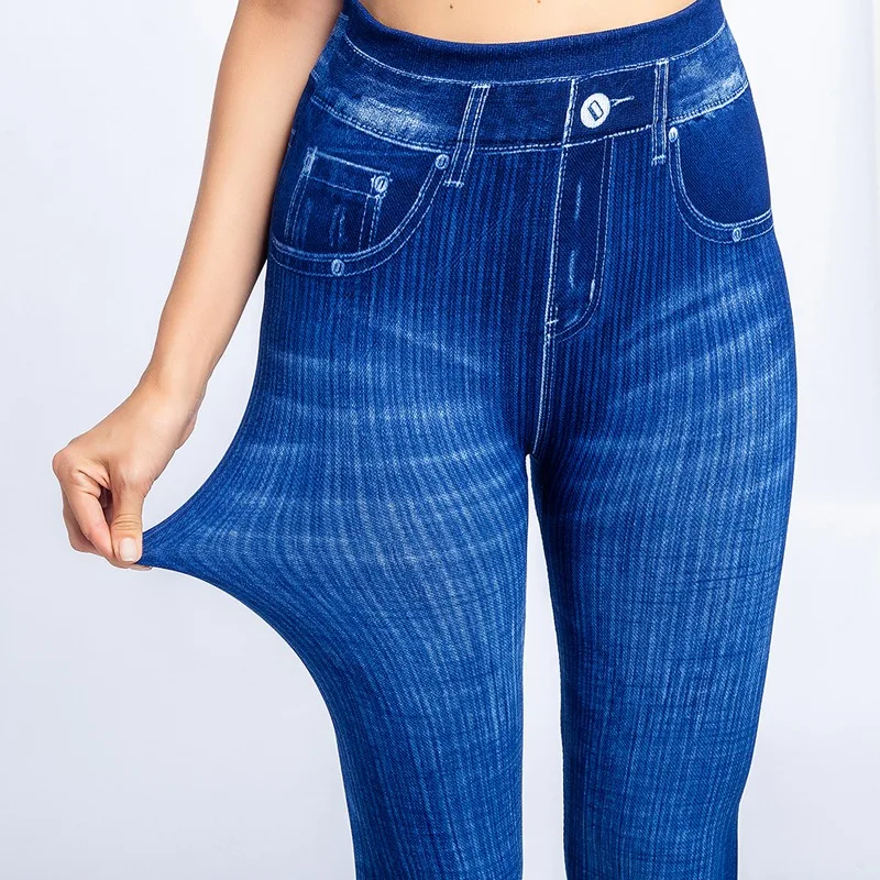 Женские Бесшовные Леггинсы Узкие эластичные узкие джинсовые брюки-карандаш с высокой талией, с карманами, леггинсы для бега и тренировок, размера плюс