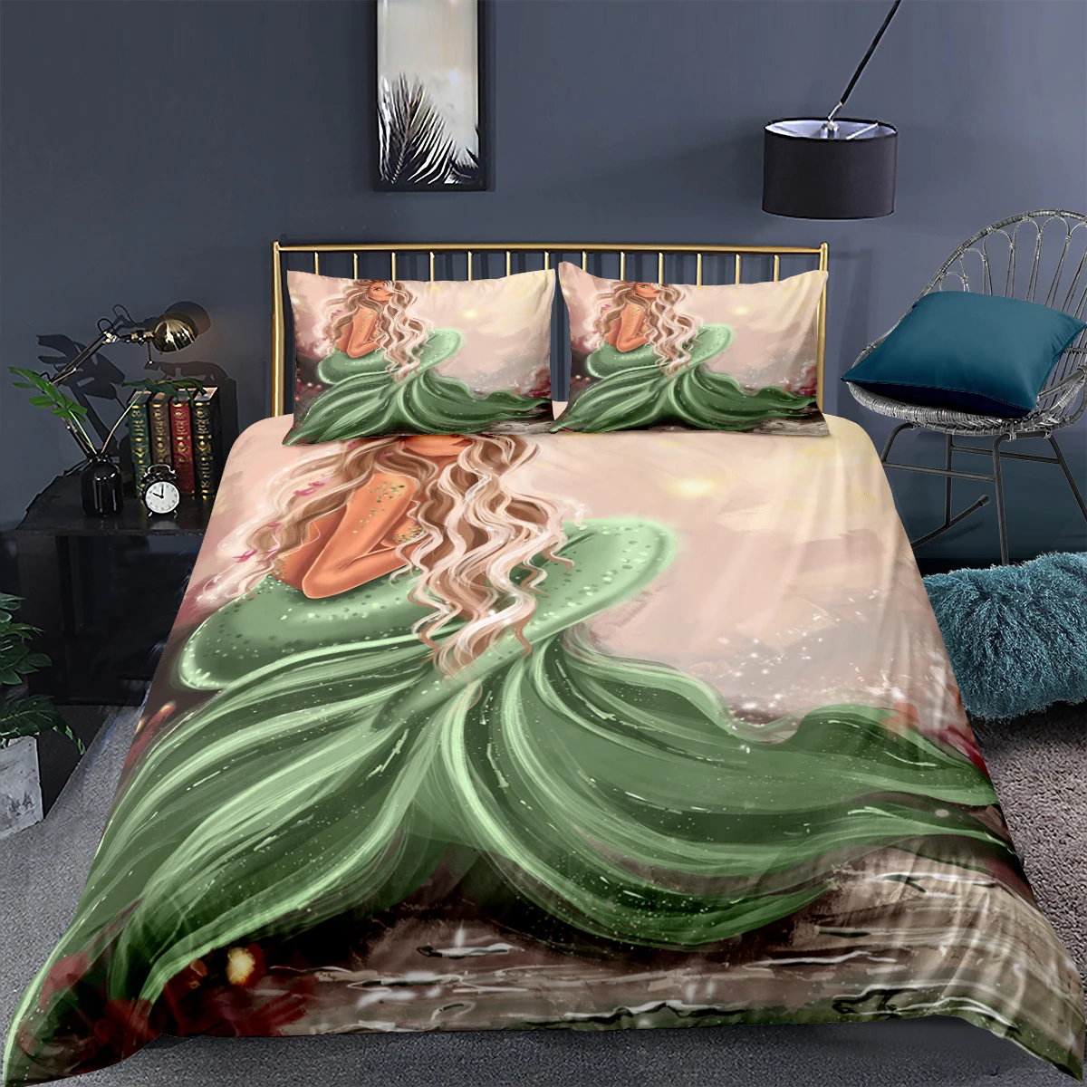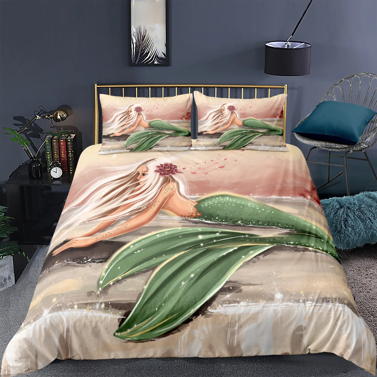 Русалка 3d постельное белье для детей, для девочек 23 шт. животных Постельное белье пододеяльник наволочка роскошные постельные принадлежности