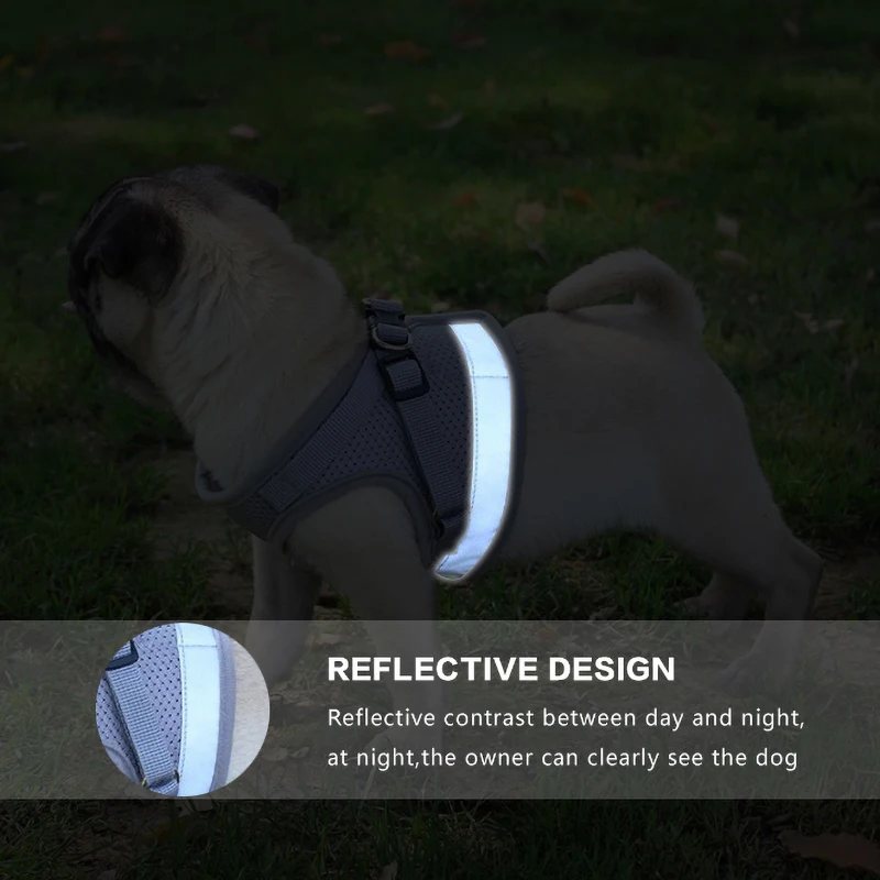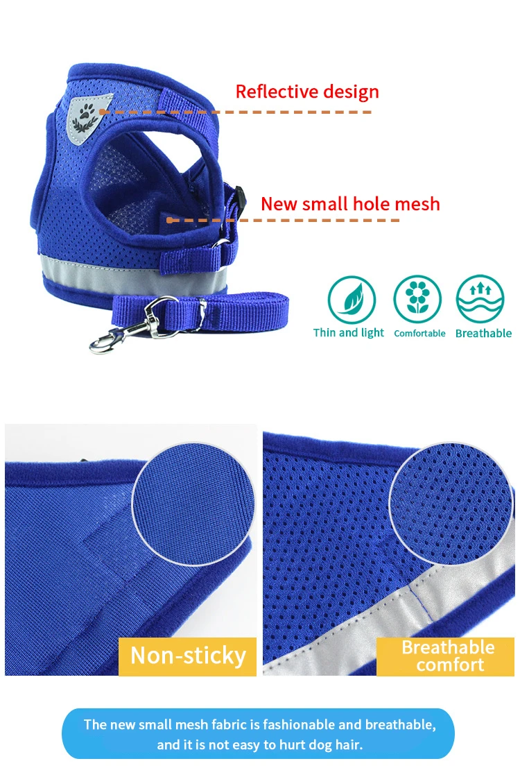 Светоотражающая шлейка-жилет для кошек и собак, Воздухопроницаемый регулируемый поводок из сетчатого материала, нагрудный ремень для щенков, товары для прогулок и домашних животных