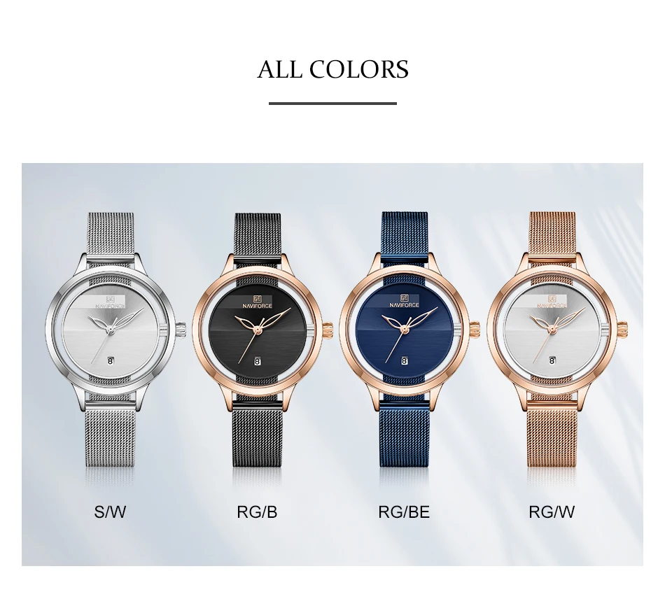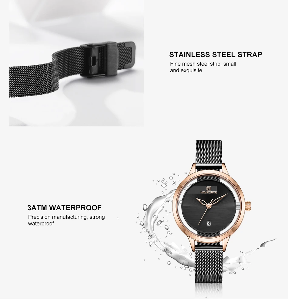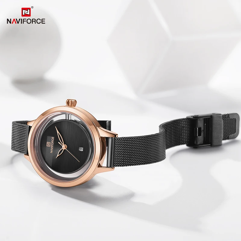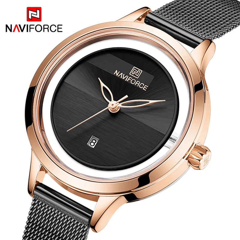 Часы NAVIFORCE женские кварцевые, водонепроницаемые, со стальным ремешком