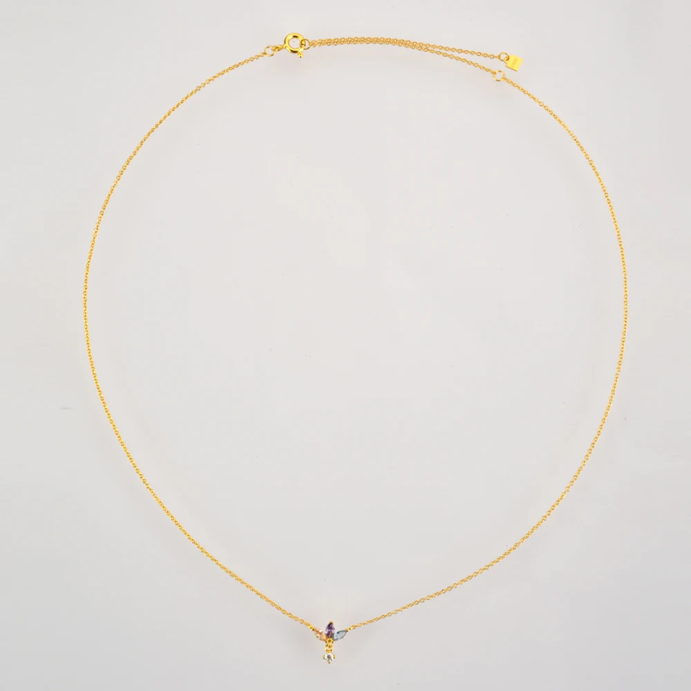 Ожерелье женское на цепочке длиной до ключиц, с фианитом, розовое з...