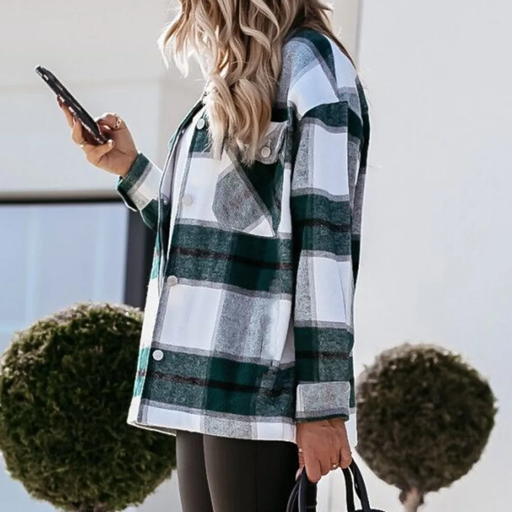 Куртка-рубашка женская в клетку, модный пиджак оверсайз с отложным воротником, свободного покроя, уличная одежда, на осень