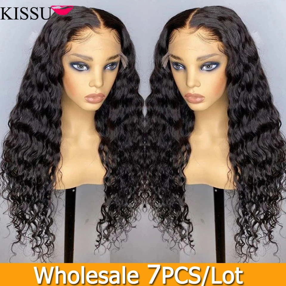 7 шт./лот, KISSU, оптовая продажа, глубокий волнистый кружевной передний парик, бразильские предварительно выщипывающиеся кружевные передние человеческие волосы, парики для женщин, 4x4, парик на застежке