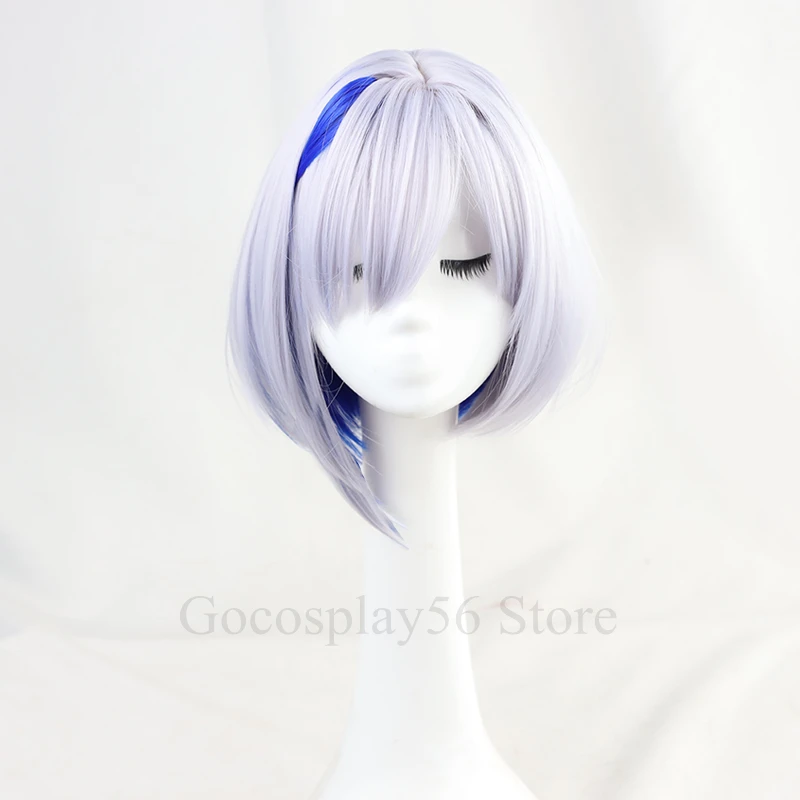 VTuber Amane Kanata парик Hololive Fantasy Youtuber Girls Cosplay короткий Bobo смешанный синий серый прямой термостойкий разбавитель волос