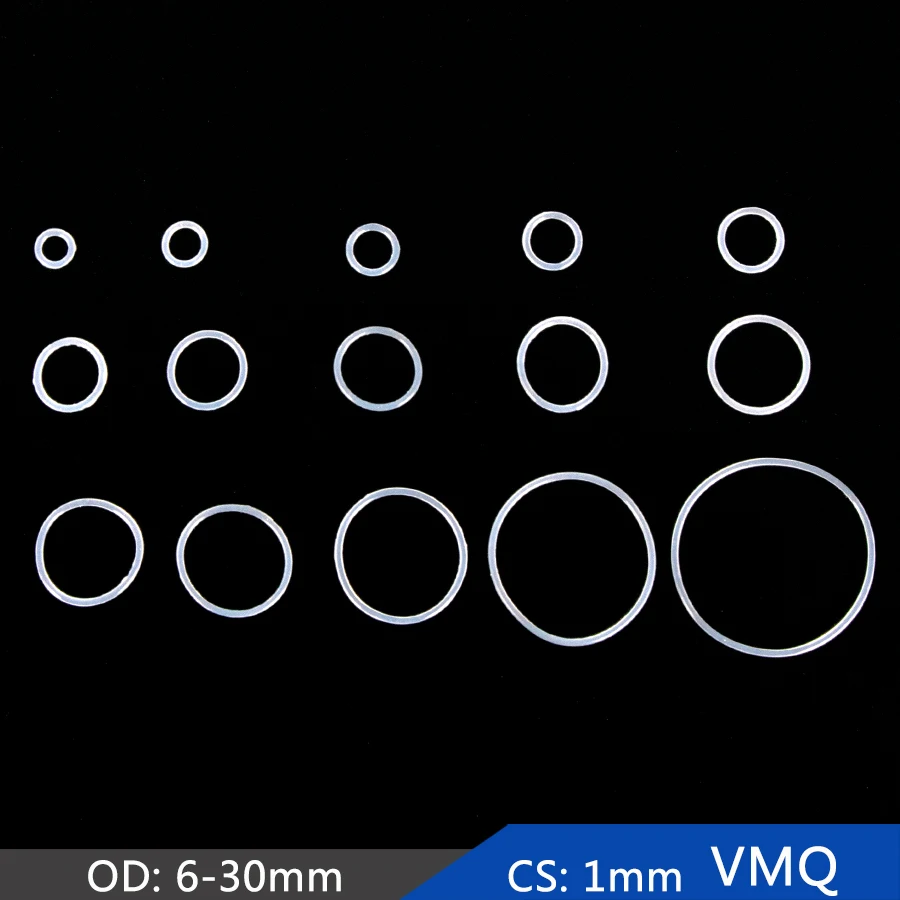 20 шт., силиконовые резиновые уплотнительные кольца VMQ, сменные белые уплотнительные кольца, прокладка, шайба OD 6 мм-30 мм, CS 1 мм, аксессуары для рукоделия, S117