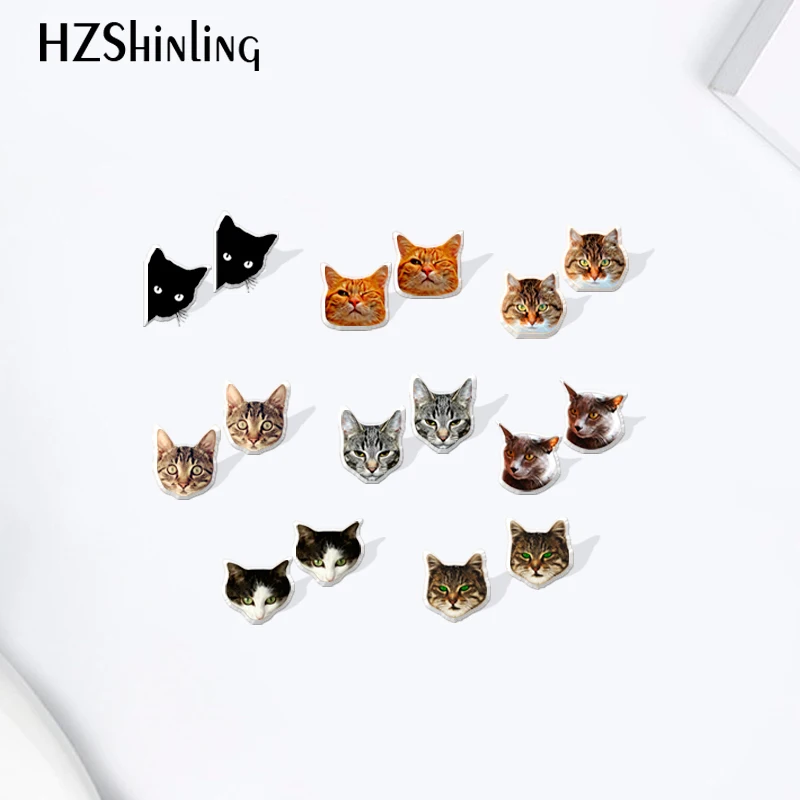 Новинка 2021, Модные Акриловые серьги-гвоздики, кавайные серьги с узором в виде головы черного кота из эпоксидной смолы, акриловые серьги, ювелирные изделия