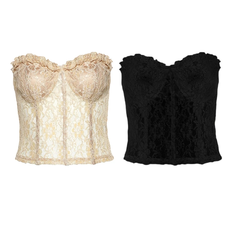Женский прозрачный сетчатый укороченный Топ без бретелек с открытыми плечами и оборками, прозрачный кружевной корсет-бюстье с открытой спиной для клувечерние M6CD