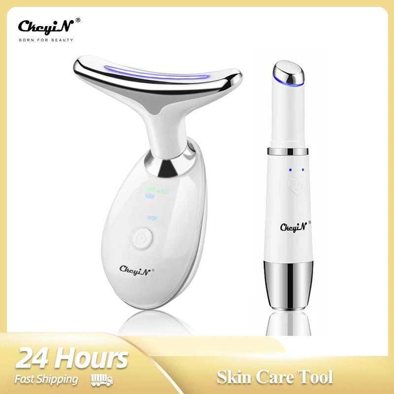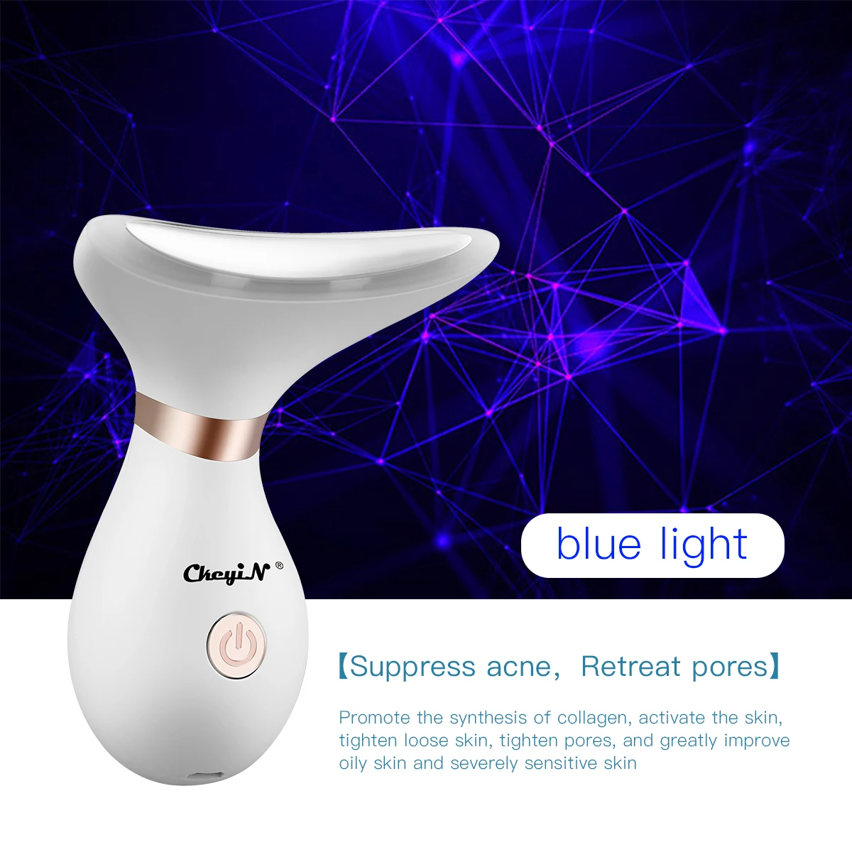 CkeyiN 3 цвета светодиодный лица средства ухода за кожей шеи массажер для лифтинга ионной глаз уход за кожей лица вибрации крем для лица против морщин и утягивающий уход за кожей вокруг глаз нагрева кузнечной печи