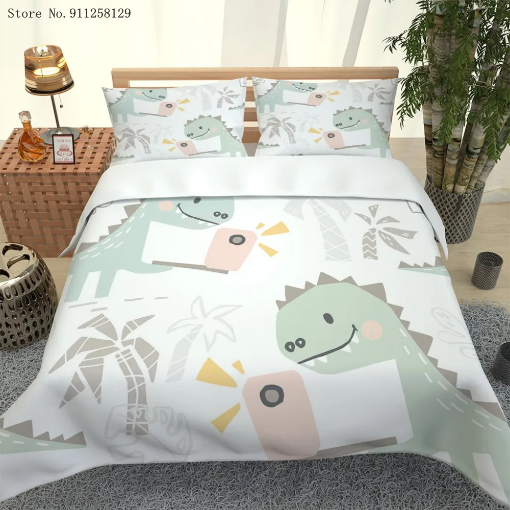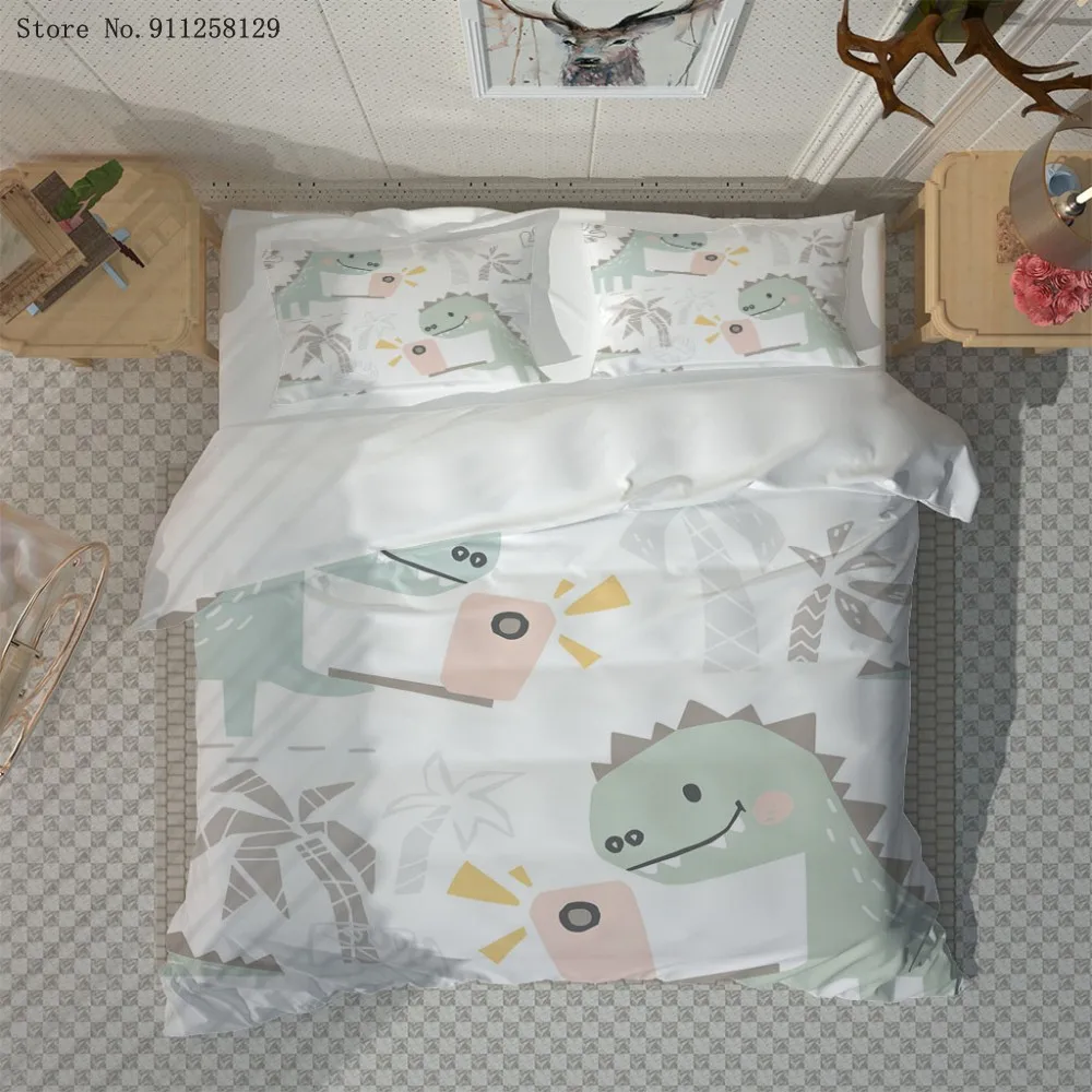 Комплект постельного белья из 23 предметов с изображением динозавров, пододеяльник с 3D рисунком из мультфильма, односпальная кровать, комплект пододеяльника, наволочка