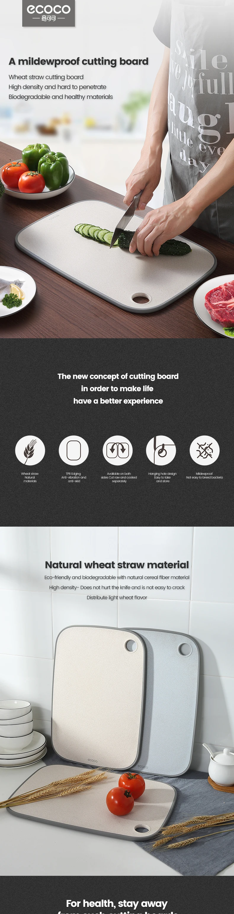 Разделочные доски ECOCO из пшеничной соломы, разделочная доска, доска для пиццы из черного ореха, доска для стейка, хлеба, резки овощей, фруктов для кухни