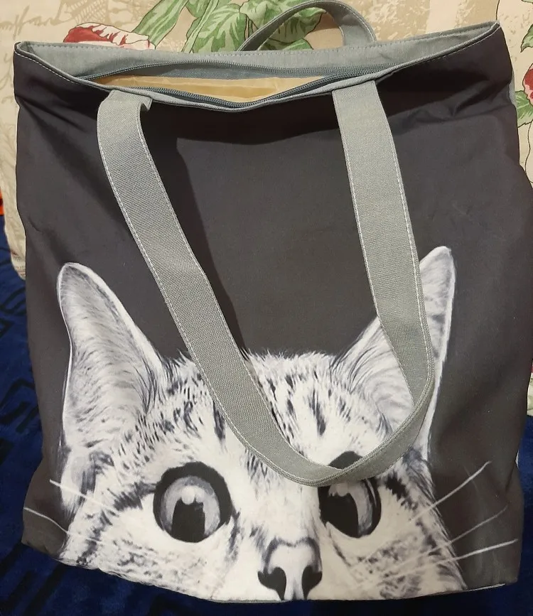 Очень красивый, отпечаток, как видно из описания с серым спиной и ручками. Закрытие застежкой-молнией и внутренней подкладкой. Отличная емкость, идеально подходит для ношения папки и очков! Я рекомендую это.