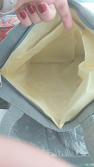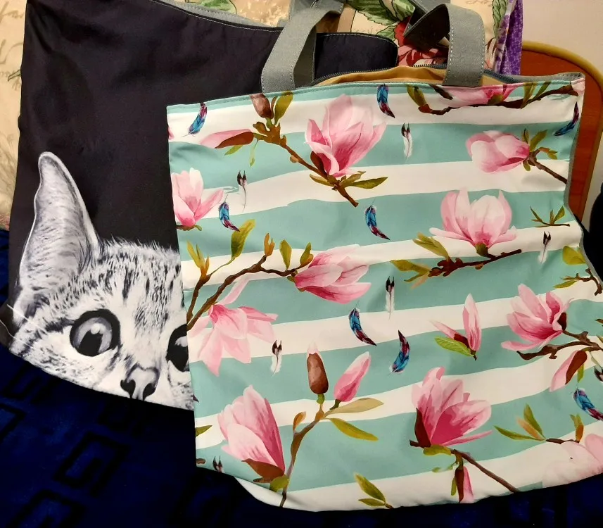 На фото сумка выглядит плотной. Надеялась что ткань будет непромокаемая. По факту тряпочка на подкладе.(((