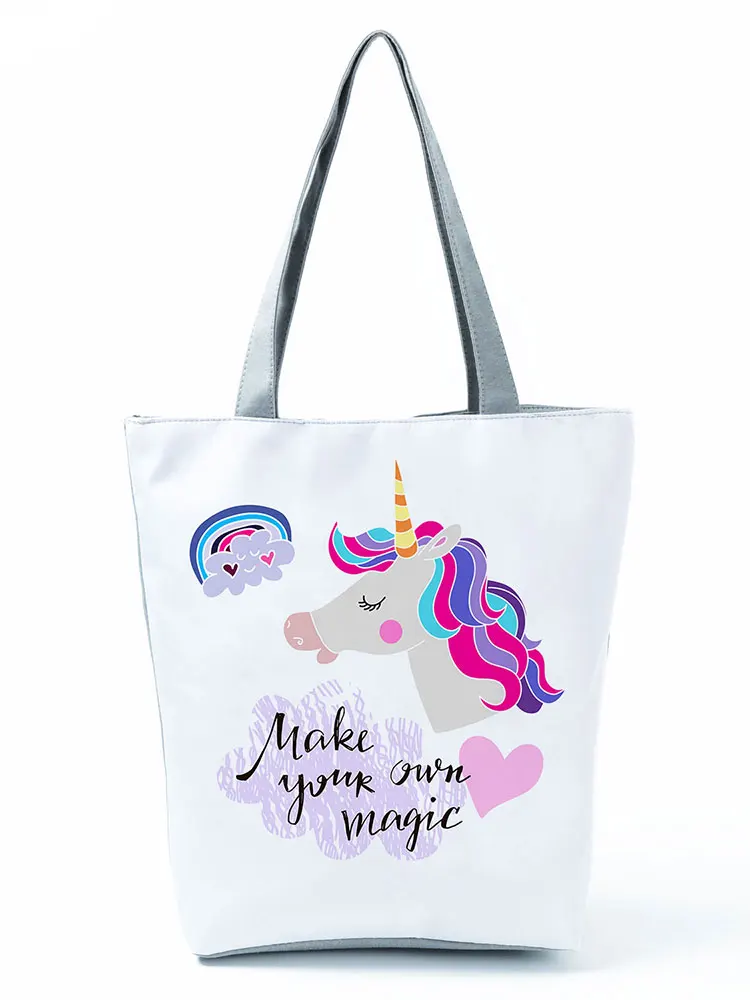 Женская сумка для покупок с принтом единорога, модная вместительная Радужная сумка на плечо с надписью, дорожная пляжная сумочка с индивидуальным рисунком