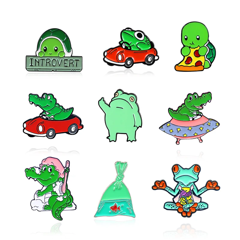 Зеленые животные Крокодил лягушка черепаха эмалированная брошь для ванной Машины НЛО пиццы на лацкан значок мультяшный Забавный значок