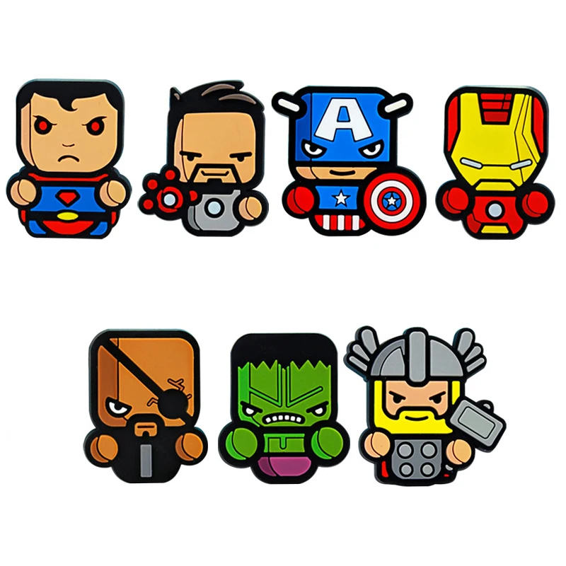 Фигурки героев фильма Marvel мстители, Железный человек, Капитан Америка, Халк, Тор, Человек-паук, игрушки, аксессуары, Пряжка для обуви, экшн-фигурки, подарки для детей, 1 шт.