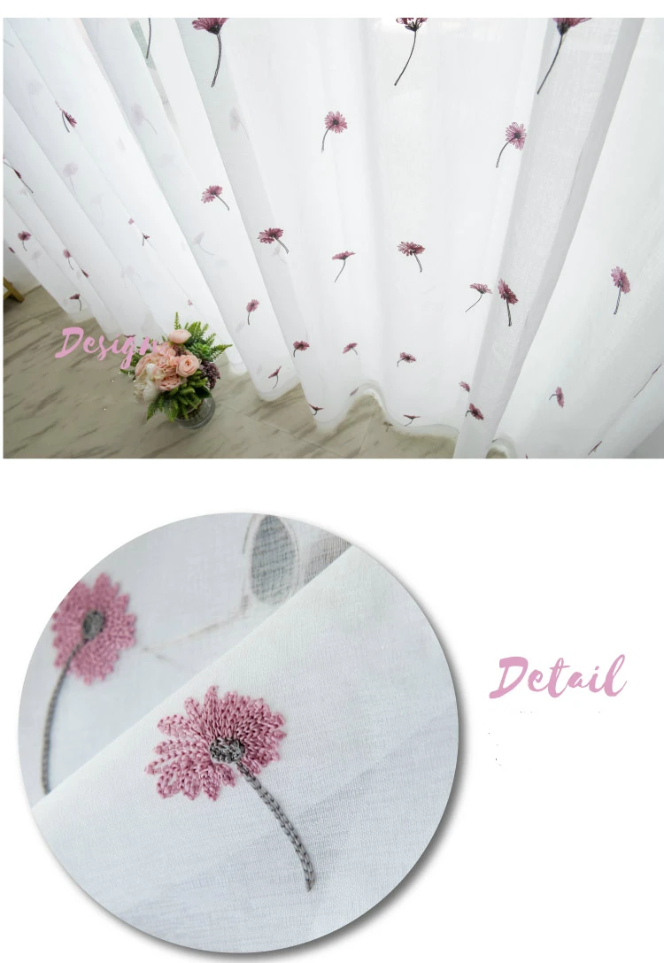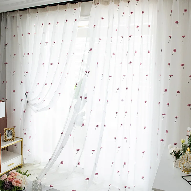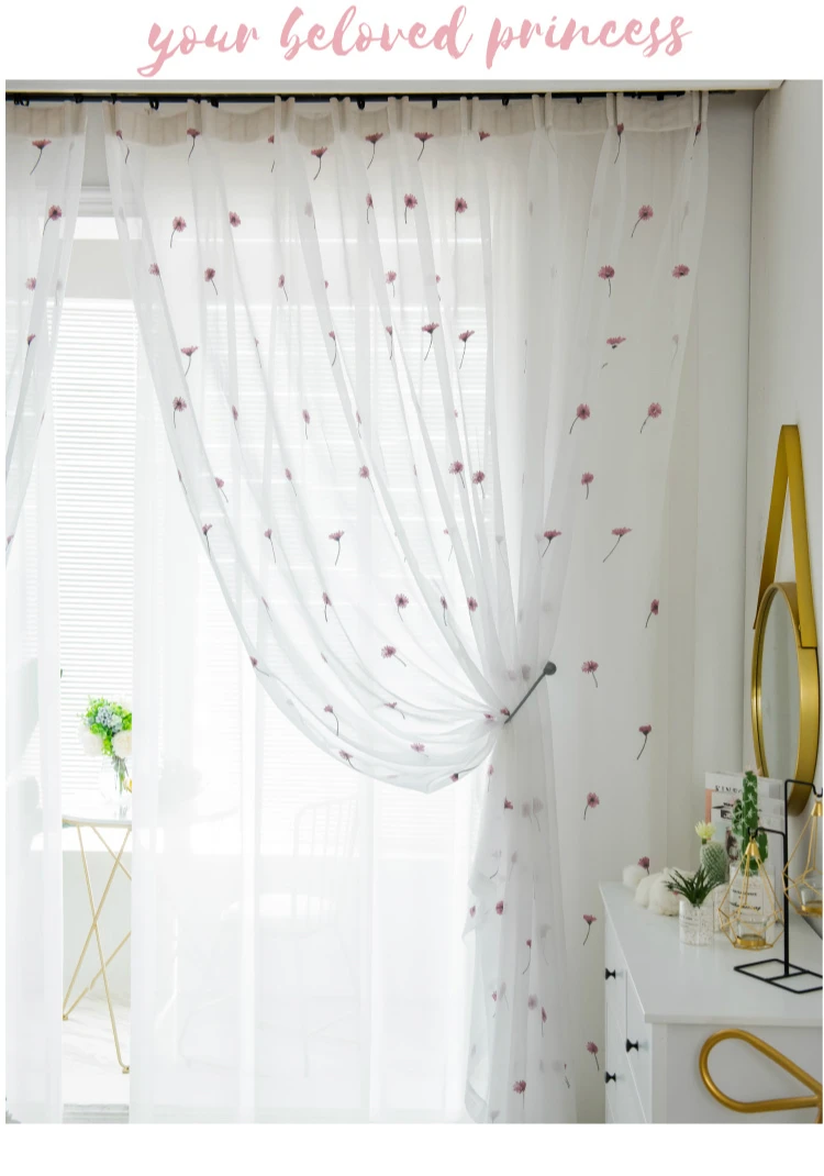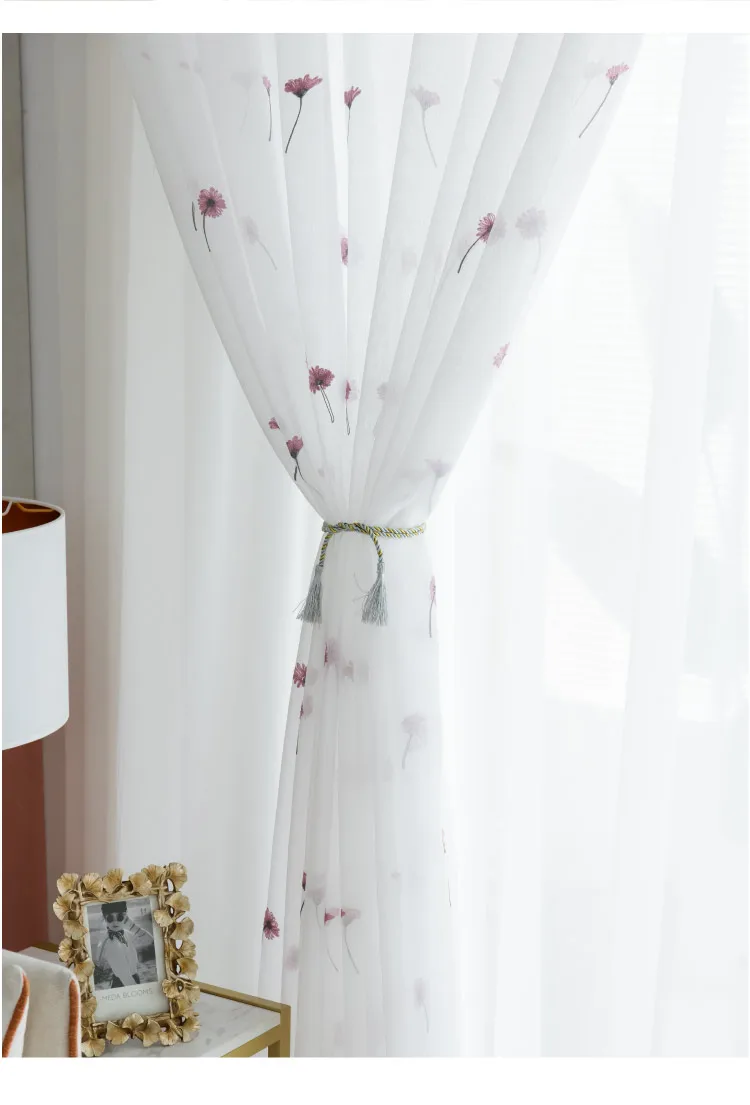 Тюлевые занавески в скандинавском стиле с розовыми цветами для гост...