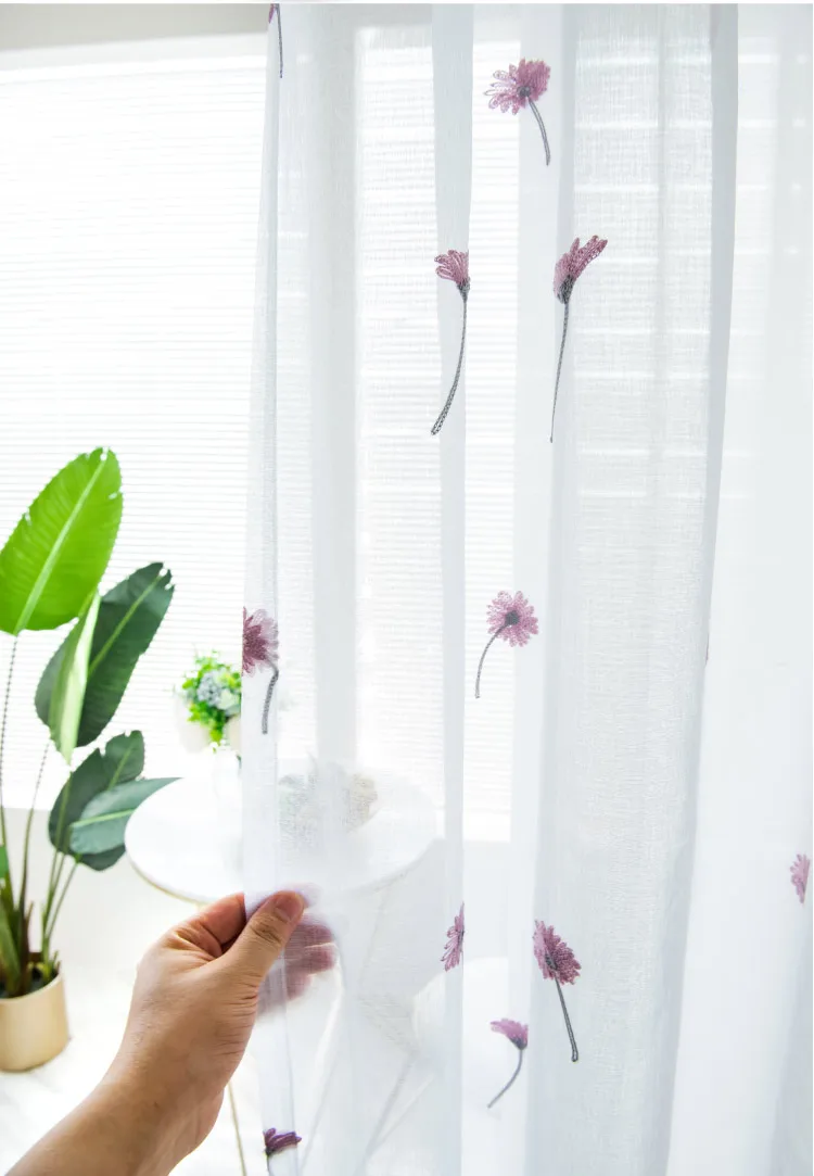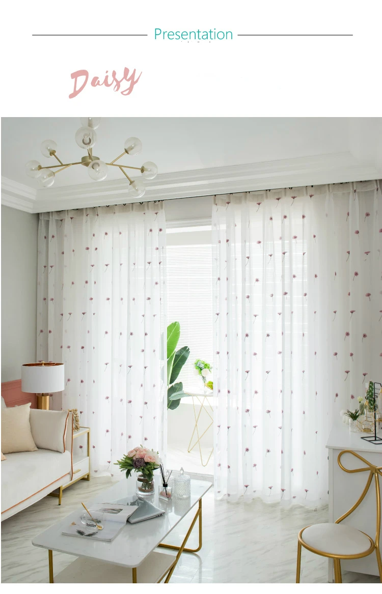 Тюлевые занавески в скандинавском стиле с маргаритками для гостиной...